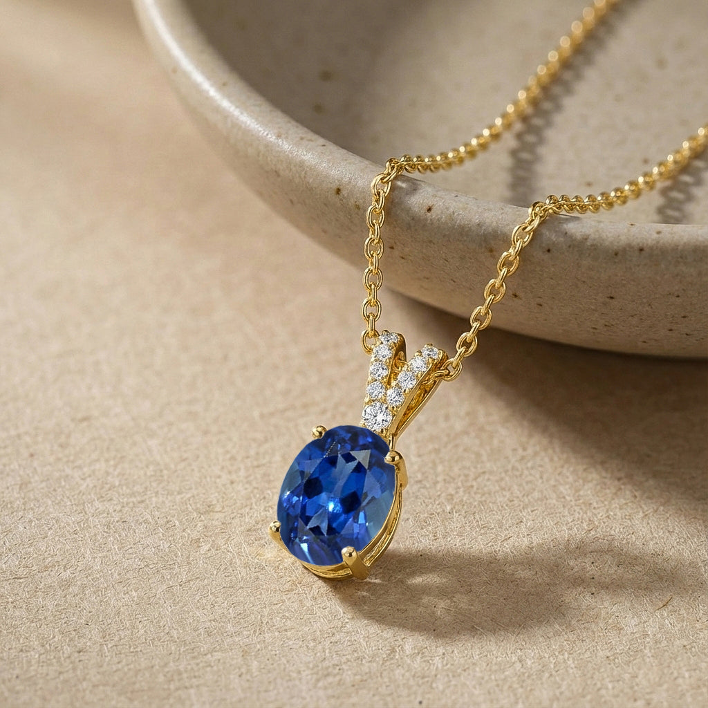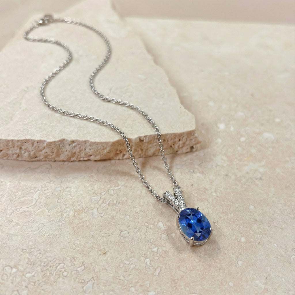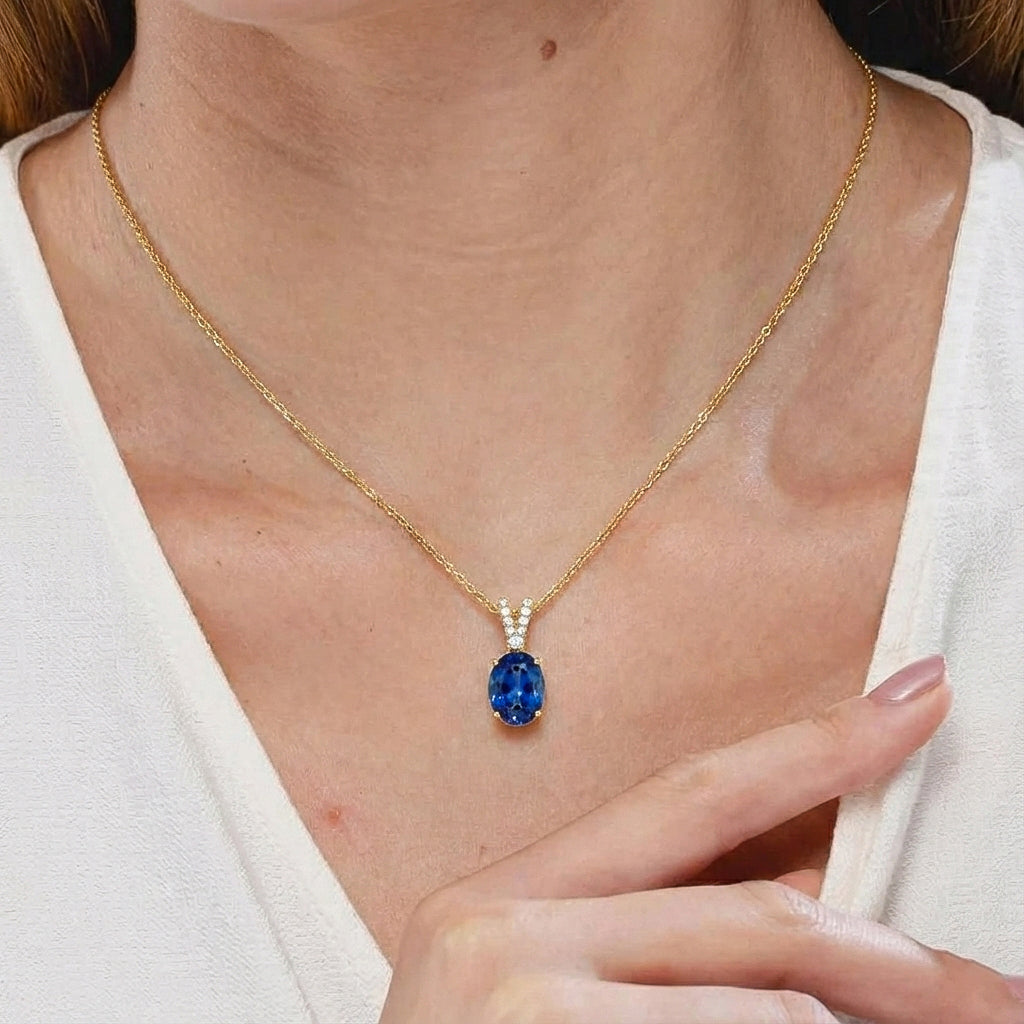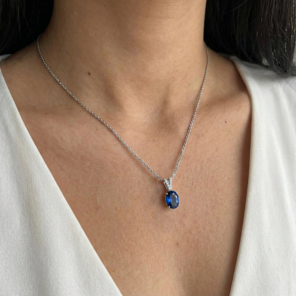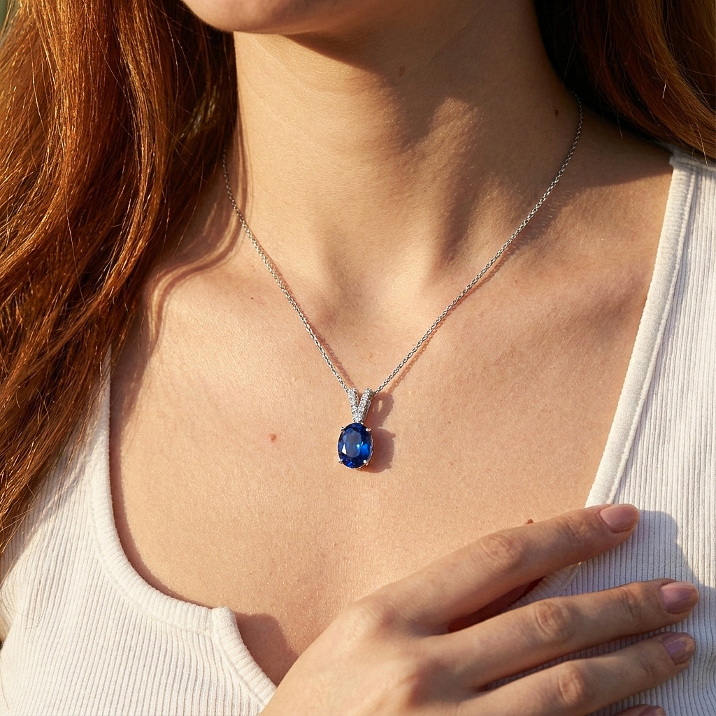Blue Sapphire Solitaire Pendant Necklace in 925 Sterling Silver features a striking 1.2ct oval-cut blue sapphire (8x6mm) with rich color and brilliant faceting. Set in a timeless solitaire design, the pendant measures 15.81 x 6.84mm and is paired with a 16” + 2” adjustable cable chain secured with a lobster clasp. Crafted from premium sterling silver, this elegant sapphire necklace delivers classic beauty, lasting shine, and everyday comfort—ideal for gifting or elevating any jewelry collection.