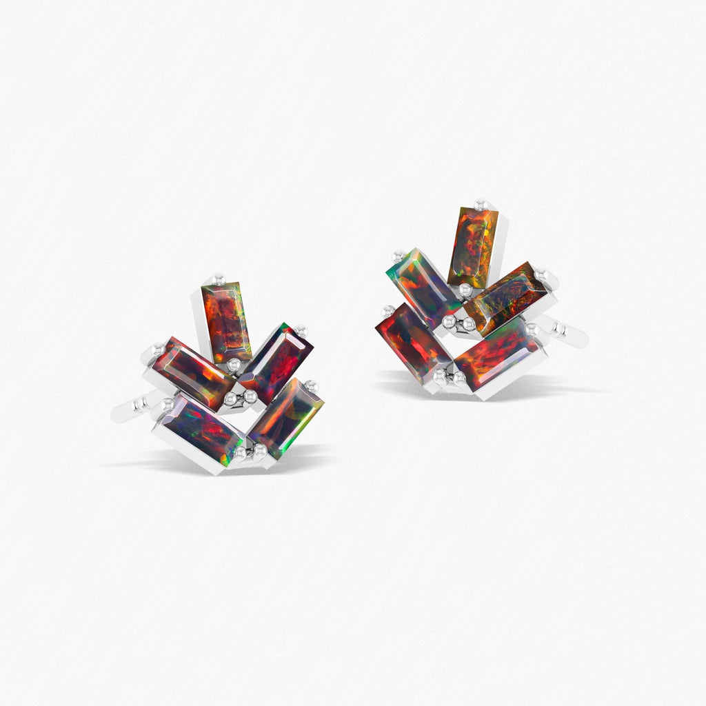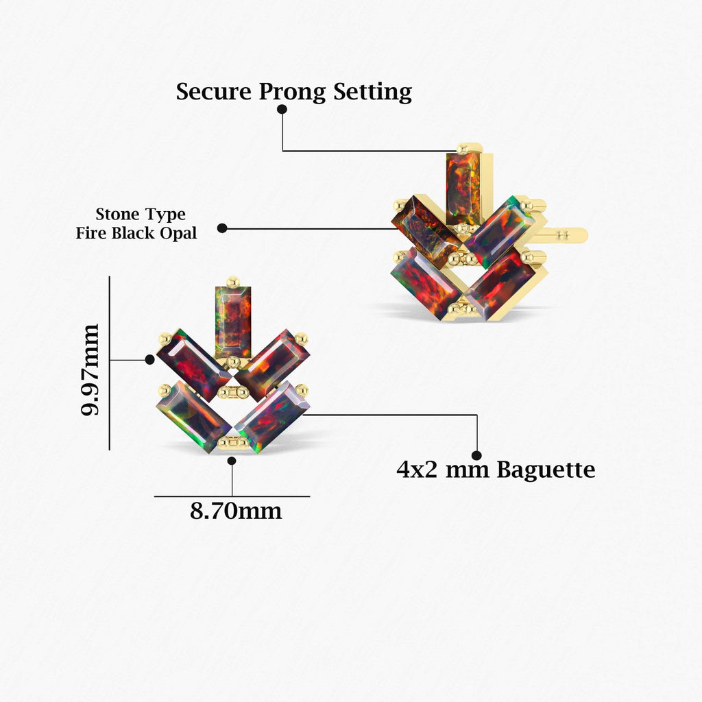 Black OpalGOODSTONE JEWELS 925 Sterling Silver Natural Black Opal Leaf Stud Earrings : Elevate your jewelry collection with these exquisite 925 Sterling Silver stud earrings from GOODSTONE JEWELS, beautifully designed in a graceful leaf motif. This earring is perfect expression of femininity, style, and sophistication. Crafted with care and precision, each earring features 10 baguette-cut stones (4x2 mm), totaling 2 carats, set within a delicate 10.00 x 8.70 mm frame. The secure push-back closure ensures a snug and comfortable fit, while the lightweight 2.45g design makes them ideal for daily wear or special occasions.