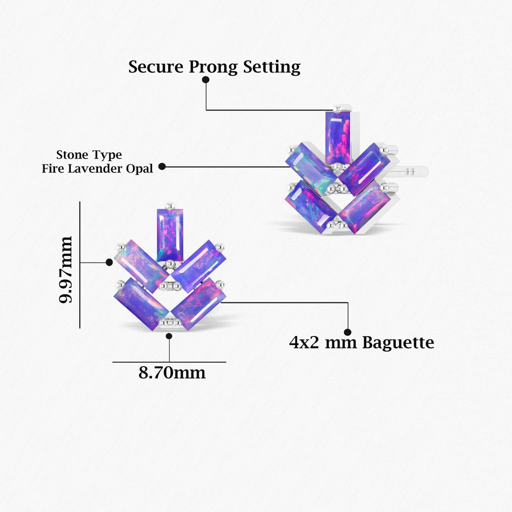 Lavender OpalGOODSTONE JEWELS 925 Sterling Silver Natural Lavender Opal Leaf Stud Earrings : Elevate your jewelry collection with these exquisite 925 Sterling Silver stud earrings from GOODSTONE JEWELS, beautifully designed in a graceful leaf motif. This earring is perfect expression of femininity, style, and sophistication. Crafted with care and precision, each earring features 10 baguette-cut stones (4x2 mm), totaling 2 carats, set within a delicate 10.00 x 8.70 mm frame. The secure push-back closure ensures a snug and comfortable fit, while the lightweight 2.45g design makes them ideal for daily wear or special occasions.