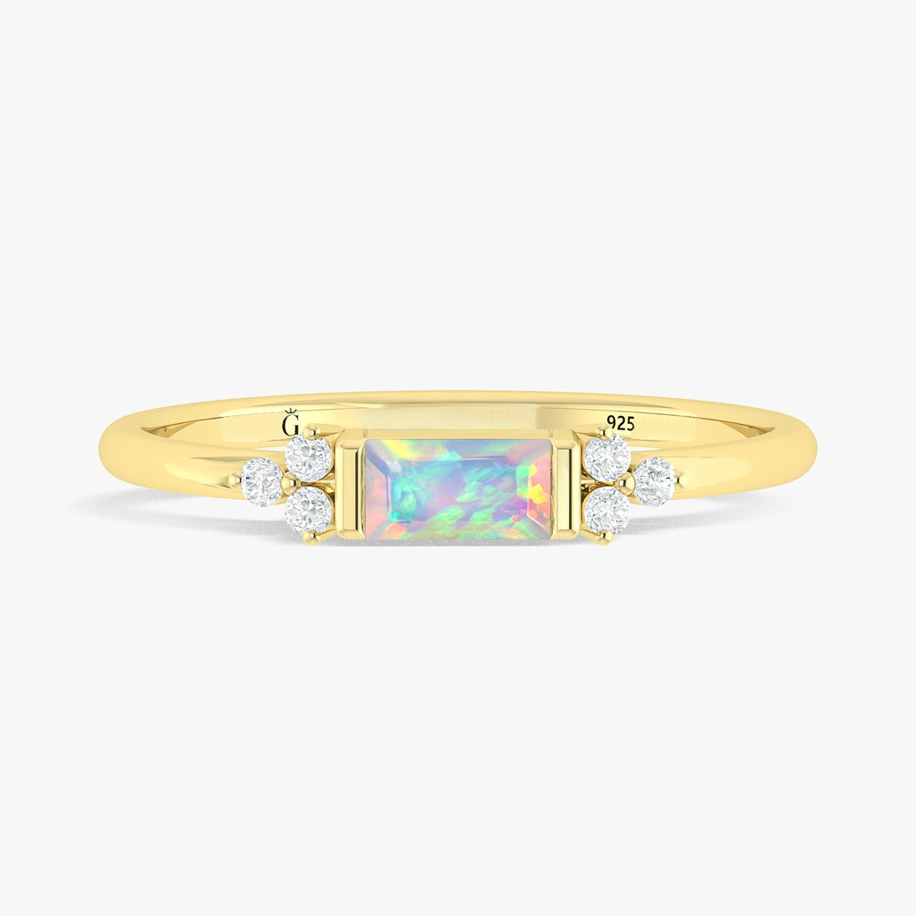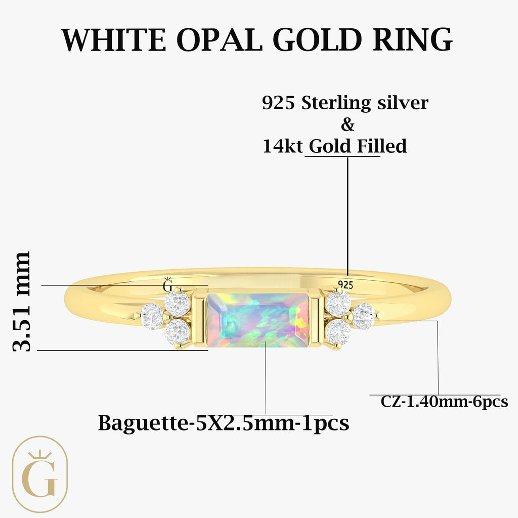 White OpalNatural White Opal Designer Ring, a timeless blend of luxury, symbolism, and everyday wearability. Featuring a genuine 5x2.5 mm baguette-cut natural White Opal, this stunning ring showcases a rich play of colors that shift with light, capturing attention and radiating charm. Expertly crafted in 925 sterling silver, it offers both elegance and durability in one exquisite piece. Designed with versatility in mind, this Designer ring complements any outfit, whether worn alone for a minimalist look or layered with other rings for a bold fashion statement. Its slim, sleek profile makes it perfect for stacking, allowing you to express your style effortlessly.