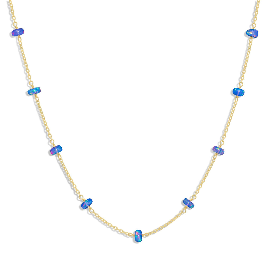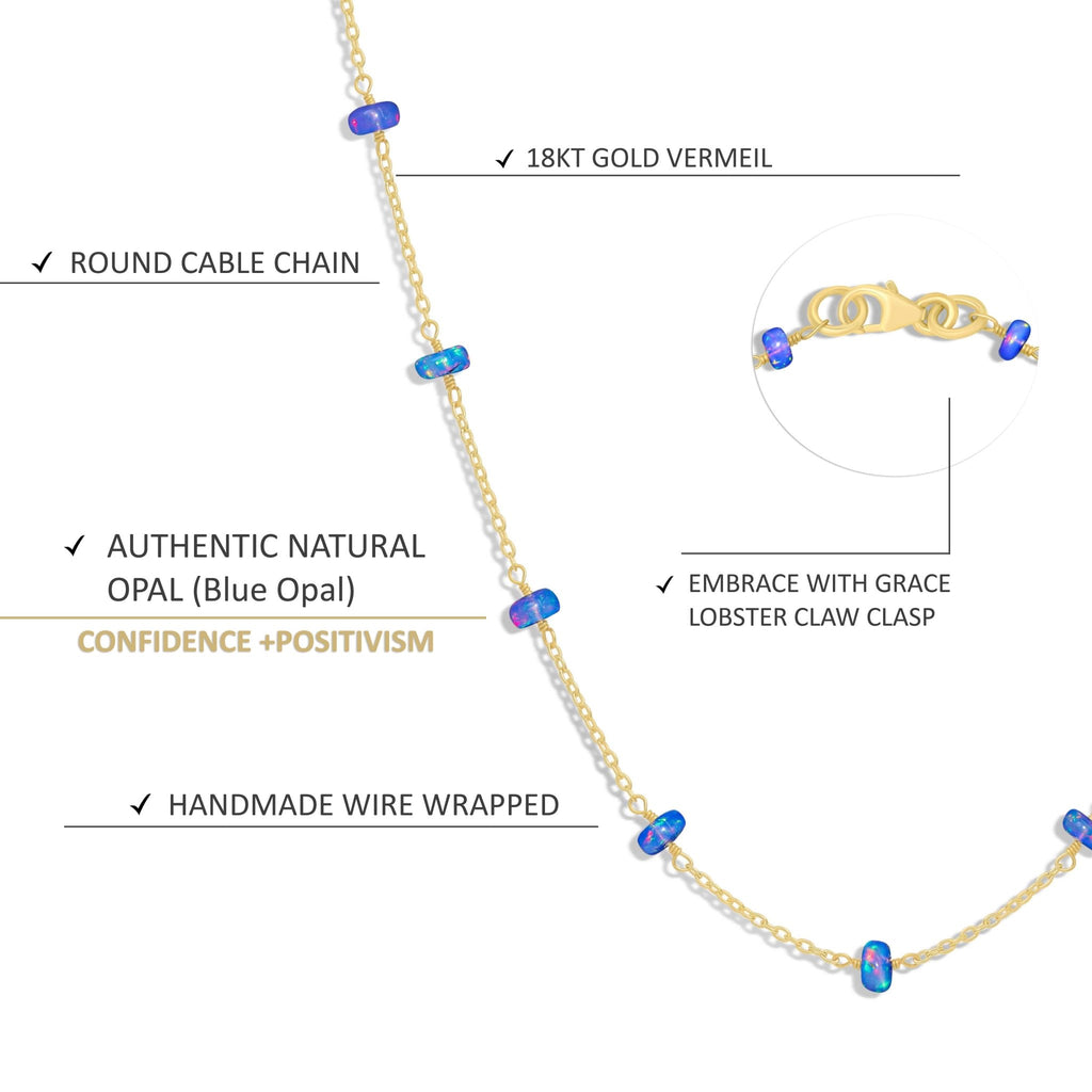 Blue OpalNatural Blue Opal Necklace : Elevate your jewelry collection with this exquisite blue opal beaded chain necklace, expertly handcrafted with smooth 4x5mm rondelle-shaped opal beads. Each bead is carefully selected for its natural shimmer and iridescence, offering a luxurious touch to any outfit. More than just a fashion accessory, opal is the October birthstone, symbolizing hope, creativity, and love. Whether you’re gifting for a birthday, anniversary, or special occasion, this birthstone jewelry gift makes a heartfelt and timeless choice. Perfect for daily wear or special events, this handmade beaded necklace is a versatile piece that transitions effortlessly from casual to formal styles.
