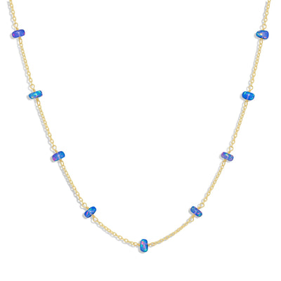 Natural Blue Opal Necklace : Elevate your jewelry collection with this exquisite blue opal beaded chain necklace, expertly handcrafted with smooth 4x5mm rondelle-shaped opal beads. Each bead is carefully selected for its natural shimmer and iridescence, offering a luxurious touch to any outfit. More than just a fashion accessory, opal is the October birthstone, symbolizing hope, creativity, and love. Whether you’re gifting for a birthday, anniversary, or special occasion, this birthstone jewelry gift makes a heartfelt and timeless choice. Perfect for daily wear or special events, this handmade beaded necklace is a versatile piece that transitions effortlessly from casual to formal styles.