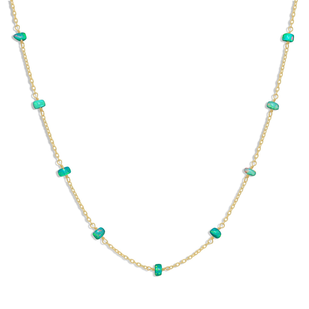 Green OpalGOODSTONE JEWELS' Natural Green Opal Necklace : Elevate your jewelry collection with this exquisite green opal beaded chain necklace, expertly handcrafted with smooth 4x5mm rondelle-shaped opal beads. Each bead is carefully selected for its natural shimmer and iridescence, offering a luxurious touch to any outfit. Crafted in premium 925 sterling silver and yellow gold filled, this necklace blends durability with elegance, ensuring long-lasting wear and radiant beauty. The secure lobster claw clasp guarantees a firm hold, while the no extra chain design keeps the look sleek and minimalist. Perfect for daily wear or special events, this handmade beaded necklace is a versatile piece that transitions effortlessly from casual to formal styles.