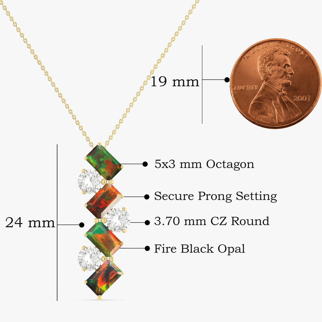 Black Baguette Opal Gemstone Charm Pendant - Goodstone Jewels