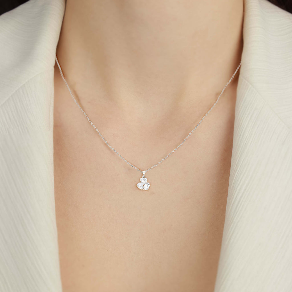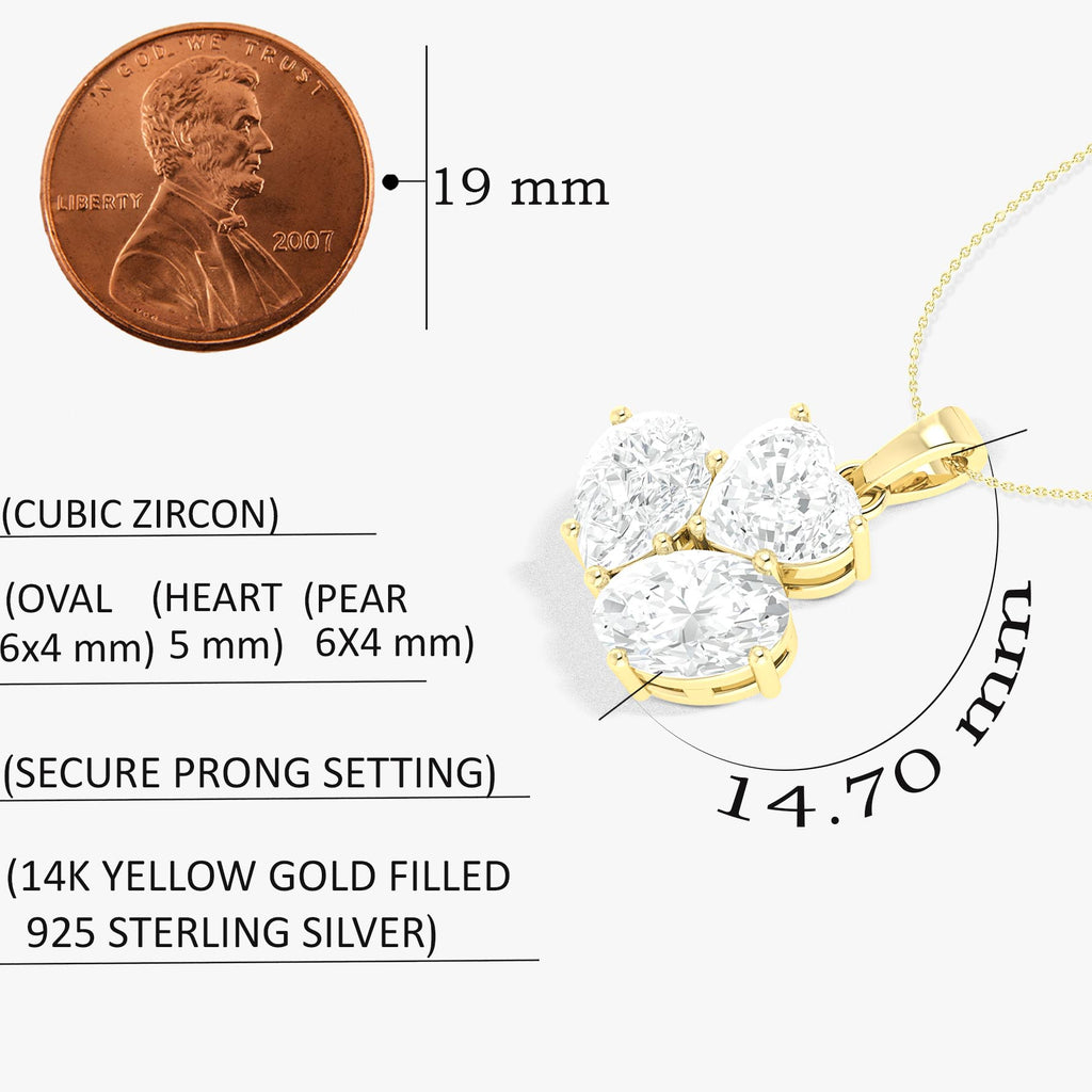 Cubic ZirconiaAdd a touch of sparkle to your style with our Cubic Zirconia 3 Stone Heart Pendant Necklace, beautifully crafted in 925 sterling silver. This dazzling pendant features a 1.65-carat Cubic Zirconia centerpiece complemented by a 5mm heart-shaped stone and 6x4mm pear & oval-cut stones, forming a timeless three-stone design that symbolizes love, elegance, and sophistication. Perfect for gifting or treating yourself, this necklace blends classic design with modern luxury.