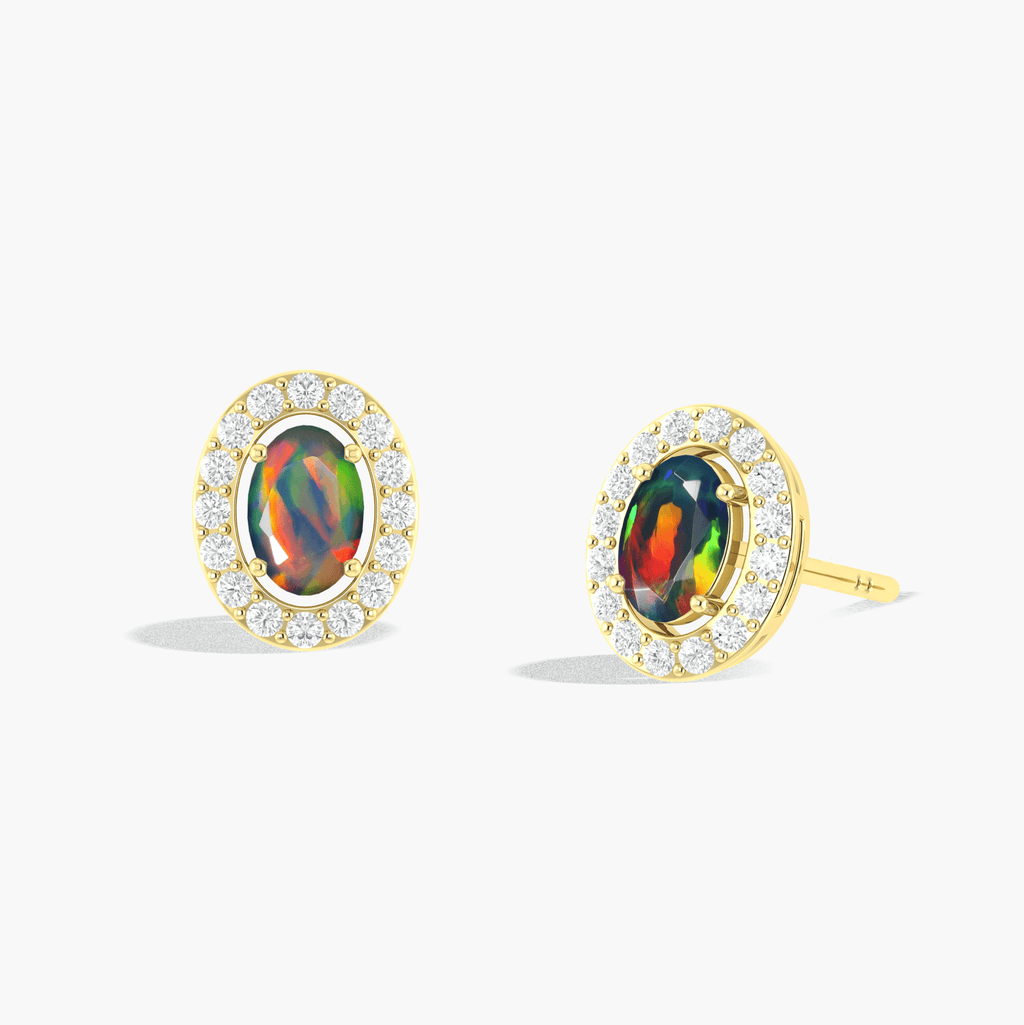Black OpalIntroducing the Black Opal Stud Earrings! This beautiful earring features a oval of stunning black opal with CZ gemstone. Wear it to add a touch of elegance and love to any outfit. Perfect for special occasions or everyday wear, this earring is sure to dazzle and delight.