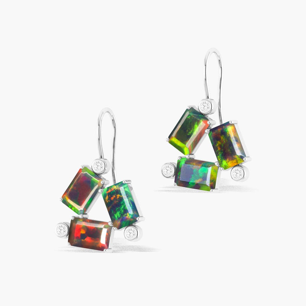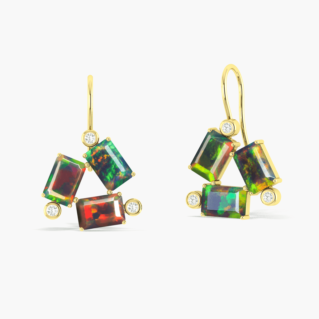 Black OpalIntroducing the Black Opal Dangle Earring! This beautiful earring features a octagon gemstone of stunning black opal. Wear it to add a touch of elegance and love to any outfit. Perfect for special occasions or everyday wear, this earring is sure to dazzle and delight.