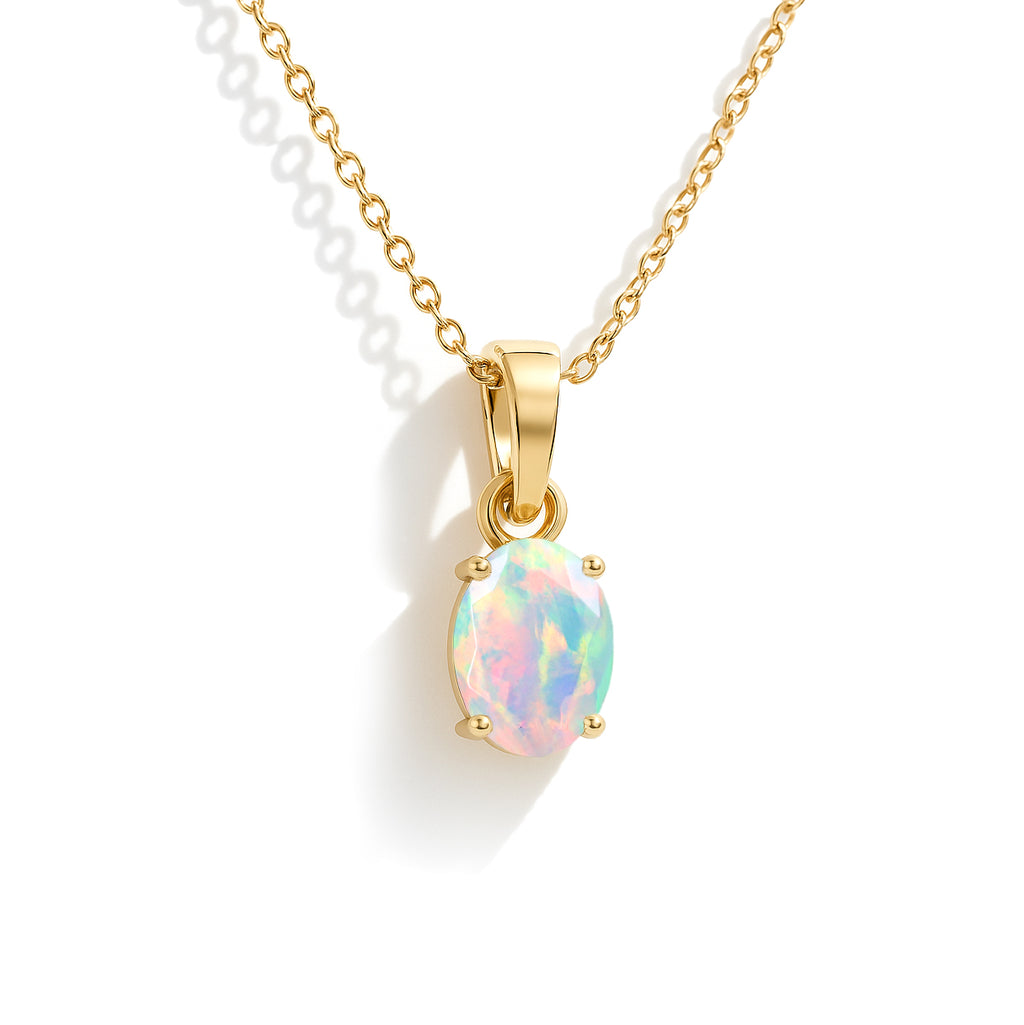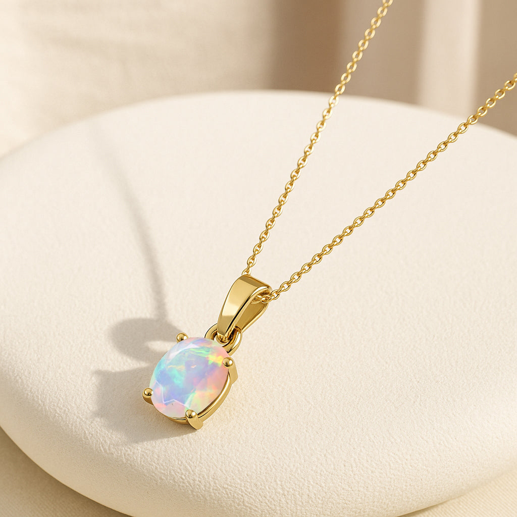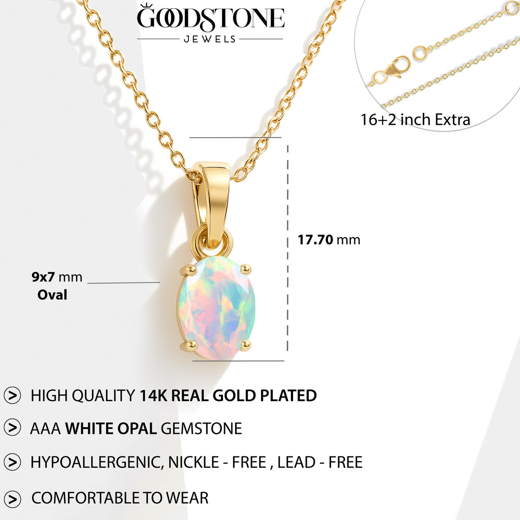 White OpalMake a bold statement with this White Opal Oval Teardrop Pendant Necklace, crafted in premium 925 sterling silver. The smooth 9×7 mm oval-cut white opal, weighing 1.20 carat, reveals captivating flashes of color within its dark, mysterious sheen. The 17.70×7.00 mm pendant hangs from a 16″ + 2″ adjustable cable chain, offering comfort and versatility. With an approximate weight of 1.60 g, this piece blends elegance and modern allure perfect for any jewelry collection.