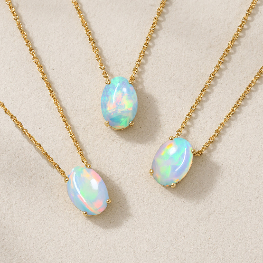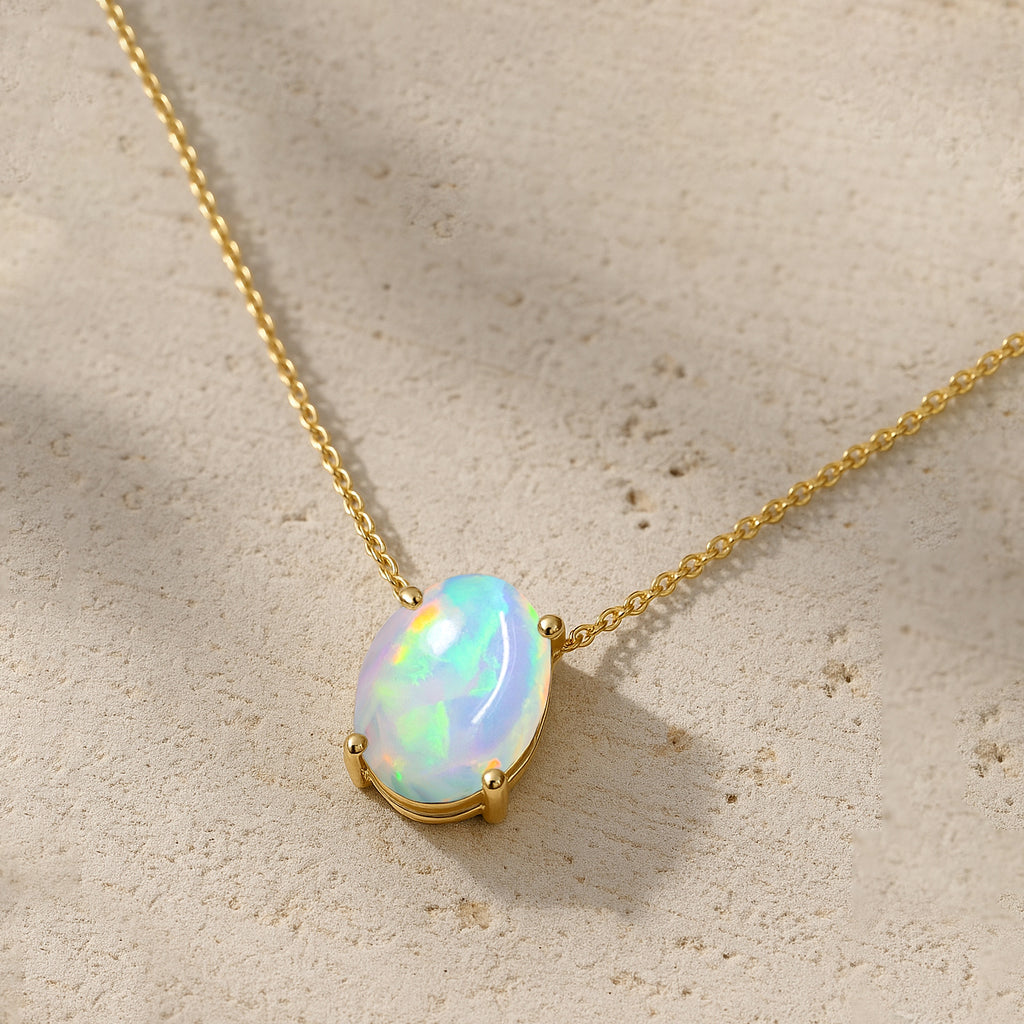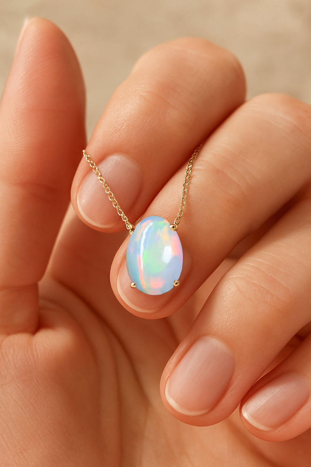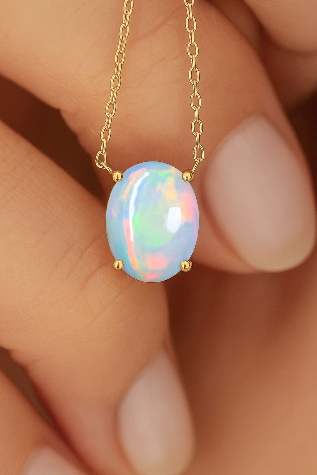 White OpalElevate your everyday elegance with this White Opal Oval Stone Pendant Necklace, beautifully crafted in premium 925 Sterling Silver. The smooth 8x6 mm opal gemstone (0.9 carat) showcases a soft, luminous glow, adding a touch of sophistication to any look. Its refined pendant size of 8.30x6.30 mm is perfectly paired with a 16" + 2" adjustable cable chain secured by a lobster clasp. Lightweight at approximately 0.95 gm, this necklace is ideal for daily wear or gifting. A timeless accessory that combines simplicity, charm, and modern style.