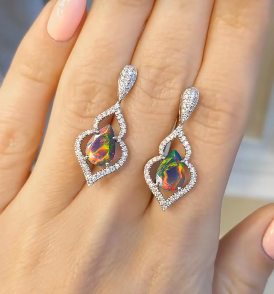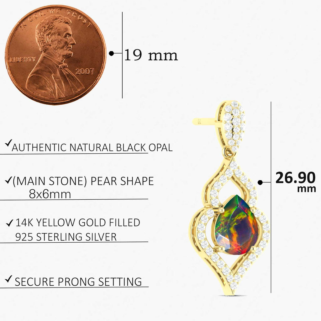 Black OpalIntroducing the Pear Opal Stud and Drop Earrings! This beautiful earring features pear of stunning opal gemstone. Wear it to add a touch of elegance and love to any outfit. Perfect for special occasions or everyday wear, this earring is sure to dazzle and delight.