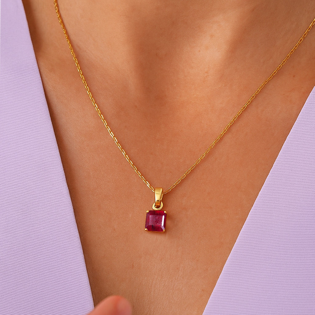 RubyAdd refined elegance to your look with this Ruby Octagon Pendant Necklace, crafted in premium 925 sterling silver. The centerpiece features a striking 7 mm octagon-cut ruby weighing 1.50 carat, showcasing rich color and brilliant depth. The pendant measures 15.65×7.00 mm and is paired with a 16″ + 2″ cable chain for adjustable comfort. With an approximate weight of 1.50 g, this necklace offers a lightweight, luxurious finish perfect for both everyday wear and special occasions.