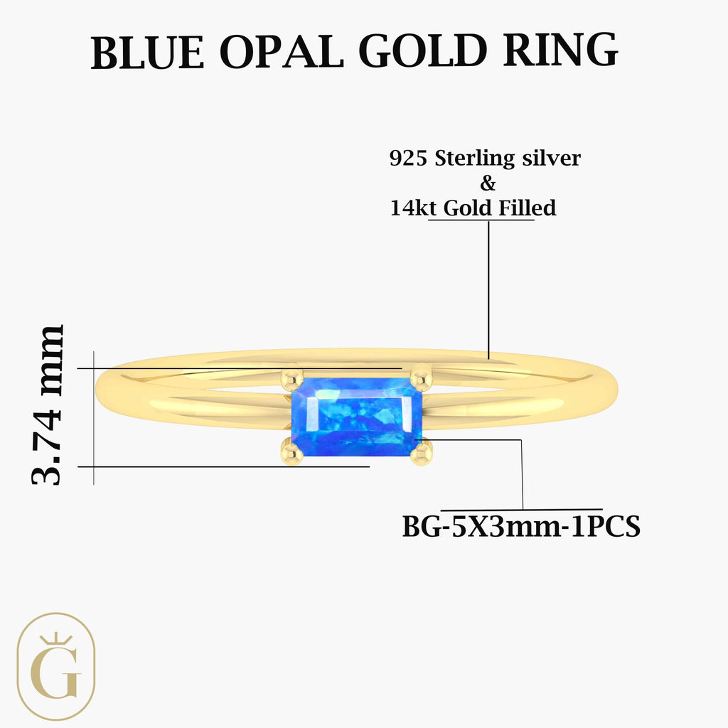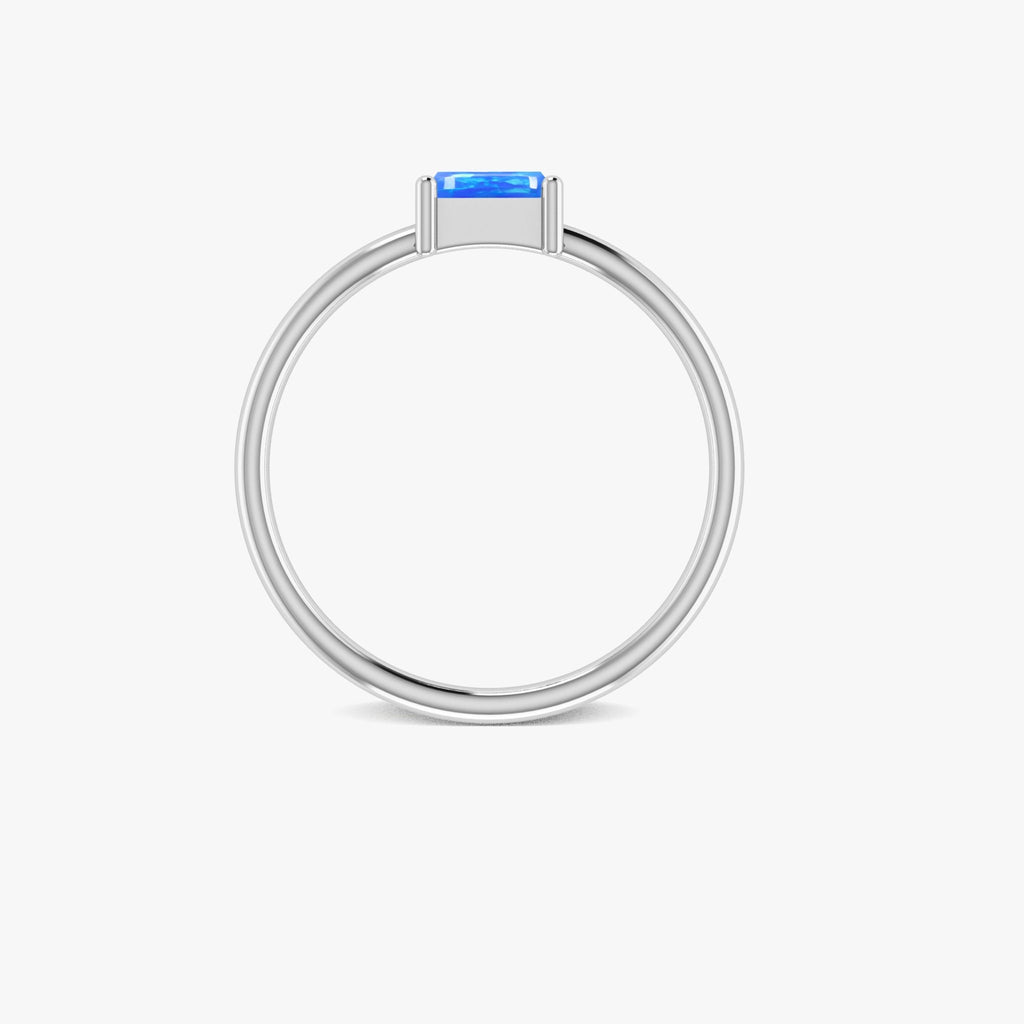 Blue OpalThis stunning ring features a mesmerizing baguette-cut blue opal, showcasing its play of color. Sparkling round CZ diamonds add a touch of luxurious brilliance. Set in sleek sterling silver, it's the perfect statement piece for a modern, sophisticated look.