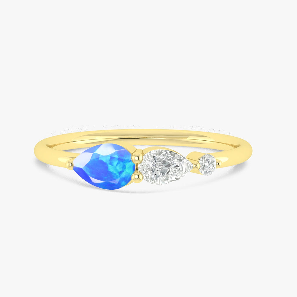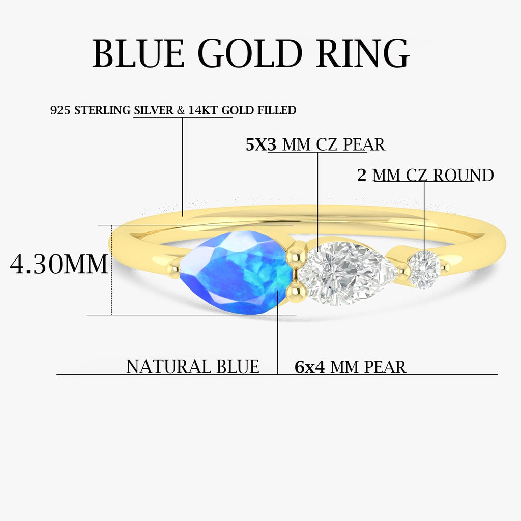 Blue Fire Opal Pear Three Stone Ring