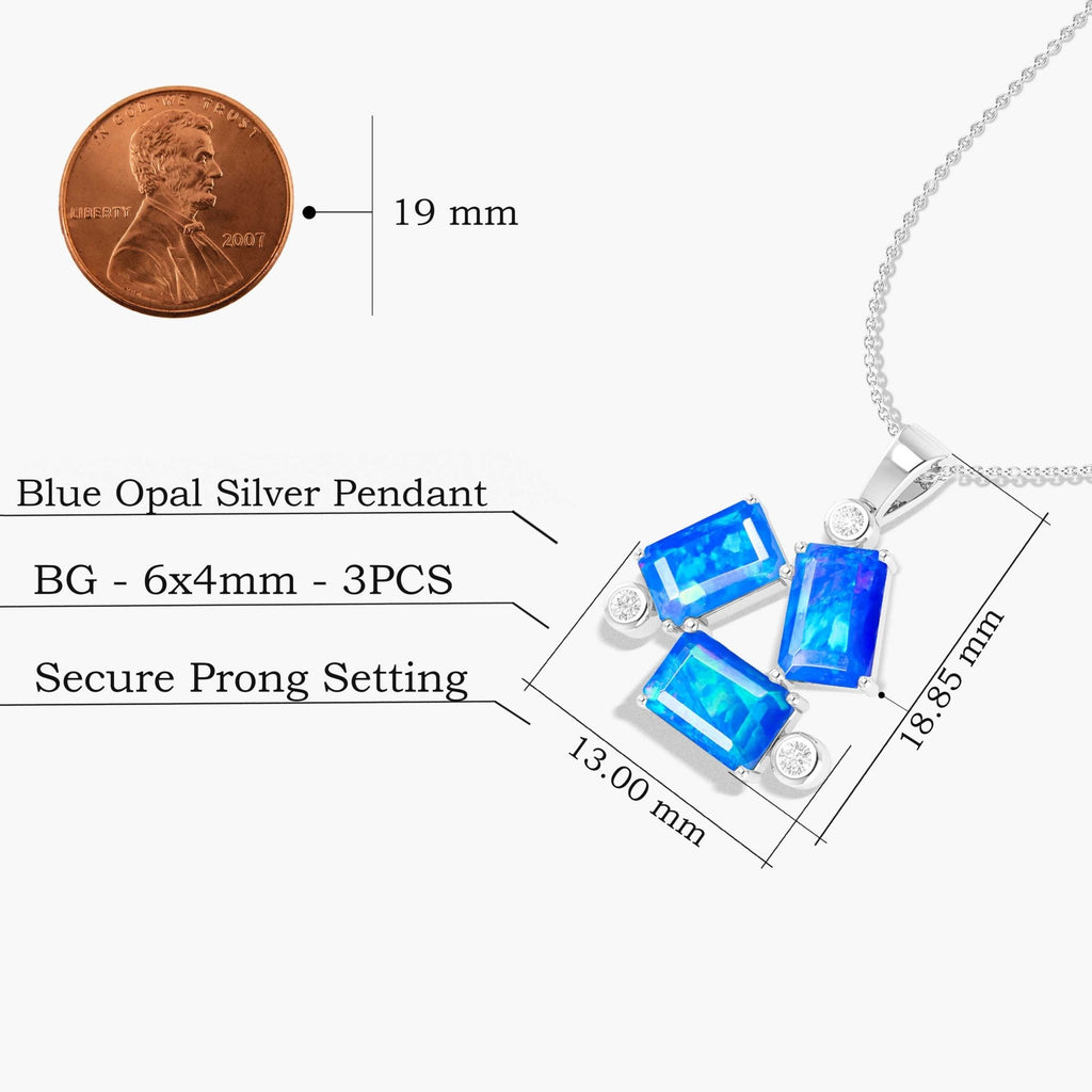 Blue OpalWe are introducing the Blue Opal Stone Charm Pendant! This beautiful necklace features three baguette gemstones of stunning blue opal. Wear it to add a touch of elegance and love to any outfit. Perfect for special occasions or everyday wear, this pendant is sure to dazzle and delight.