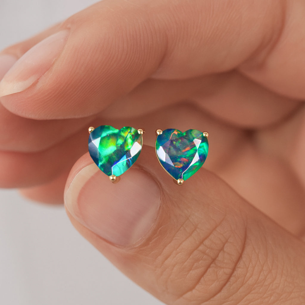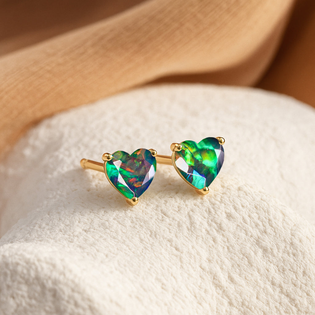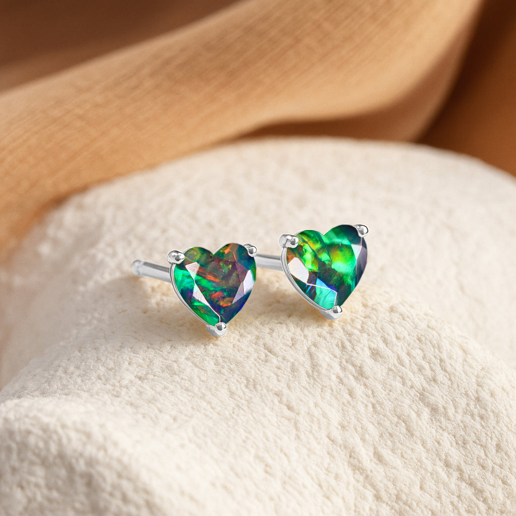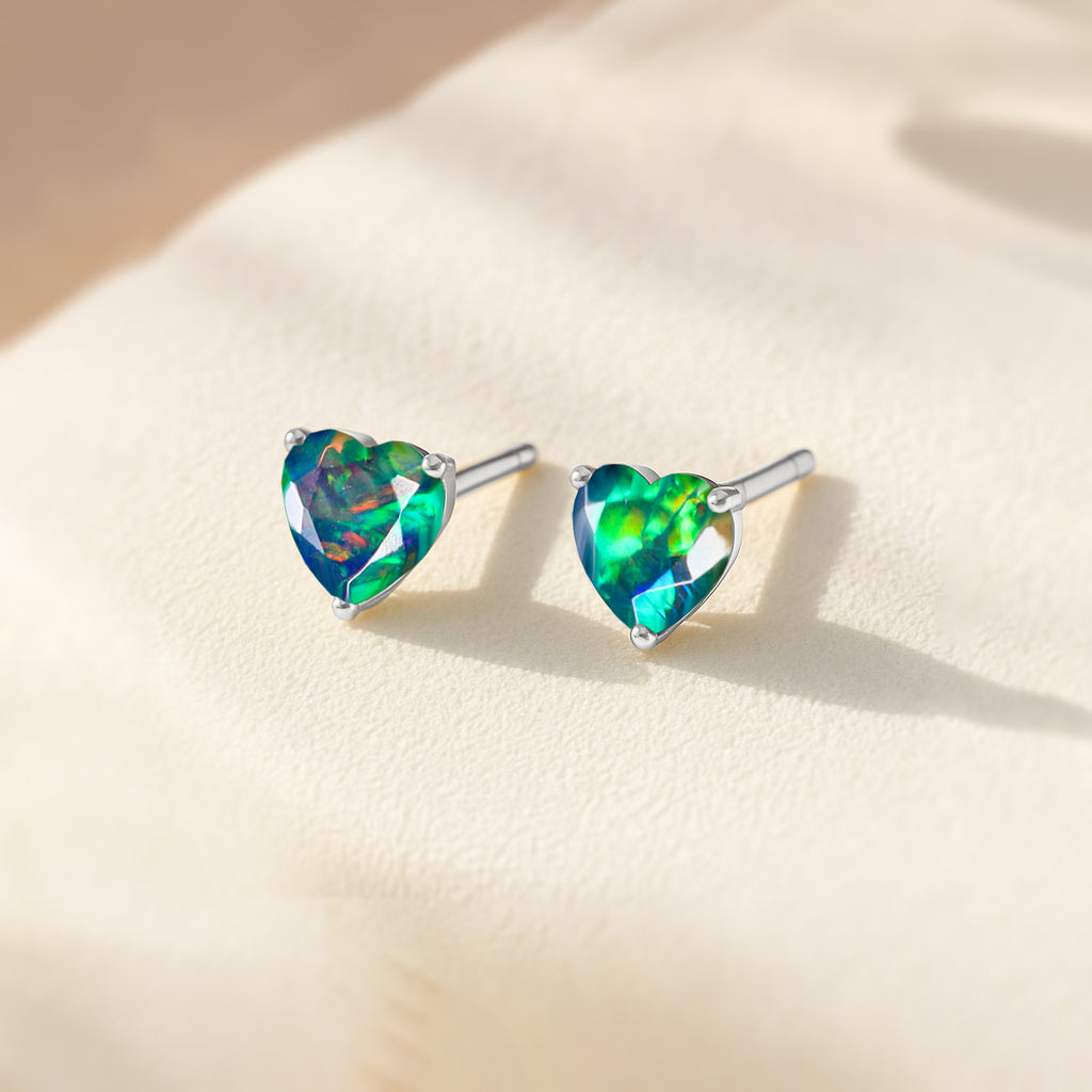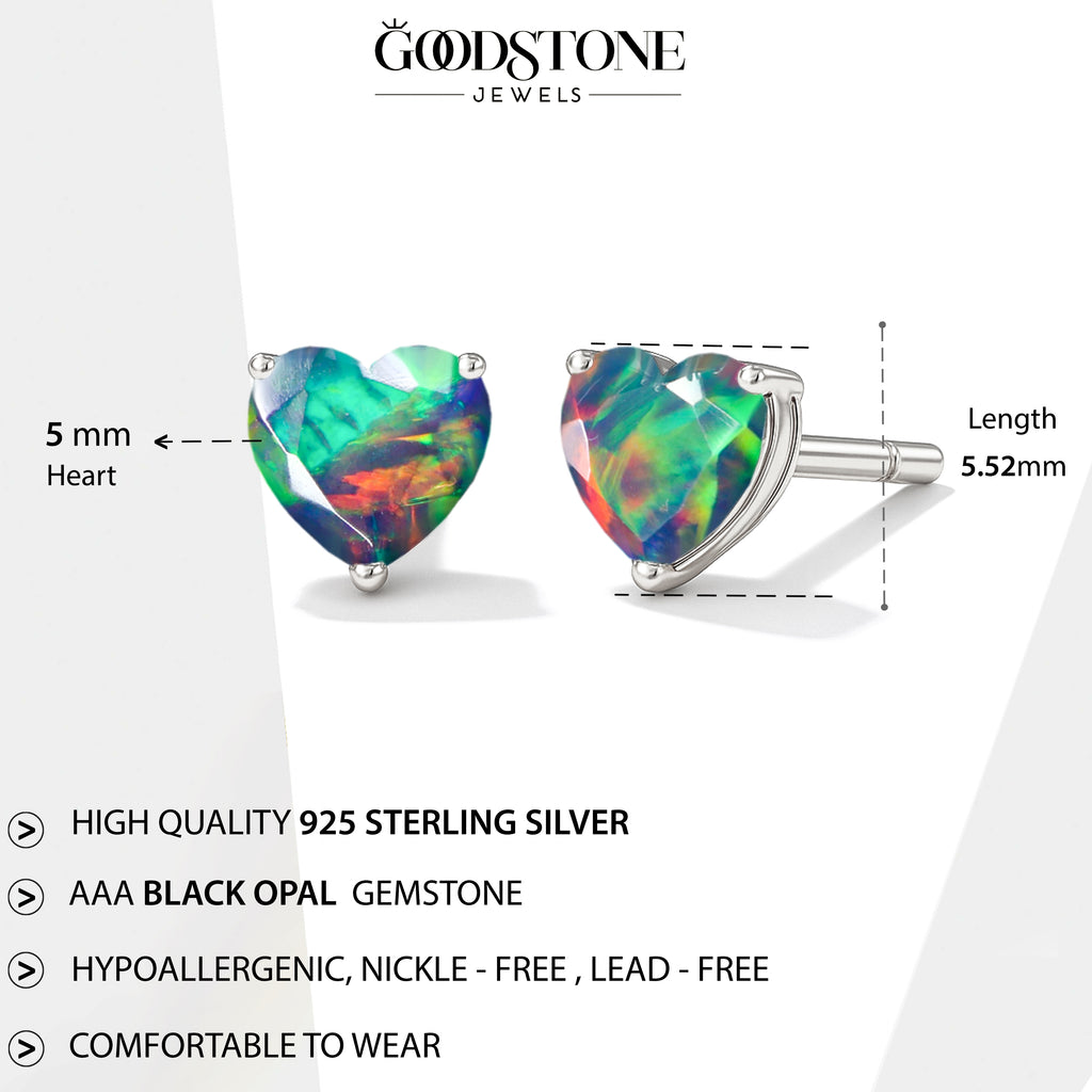 Black OpalElevate your everyday elegance with these Black Opal Heart Stud Earrings, beautifully crafted in 925 sterling silver. Each earring features a 5 mm heart-shaped black opal weighing 0.65 ct, offering a soft, iridescent glow. With a delicate size of 5.52 × 5.30 mm and an approx. weight of 0.47 g, they are lightweight, comfortable, and perfect for daily wear or gifting. A timeless symbol of love and serenity, designed to complement any style.