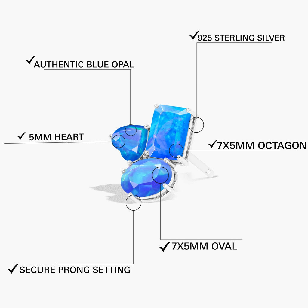 Blue OpalIntroducing the Blue Opal Multi Stone Stud Earrings! This beautiful earring features three different shape gemstone of stunning blue opal. Wear it to add a touch of elegance and love to any outfit. Perfect for special occasions or everyday wear, this earring is sure to dazzle and delight.