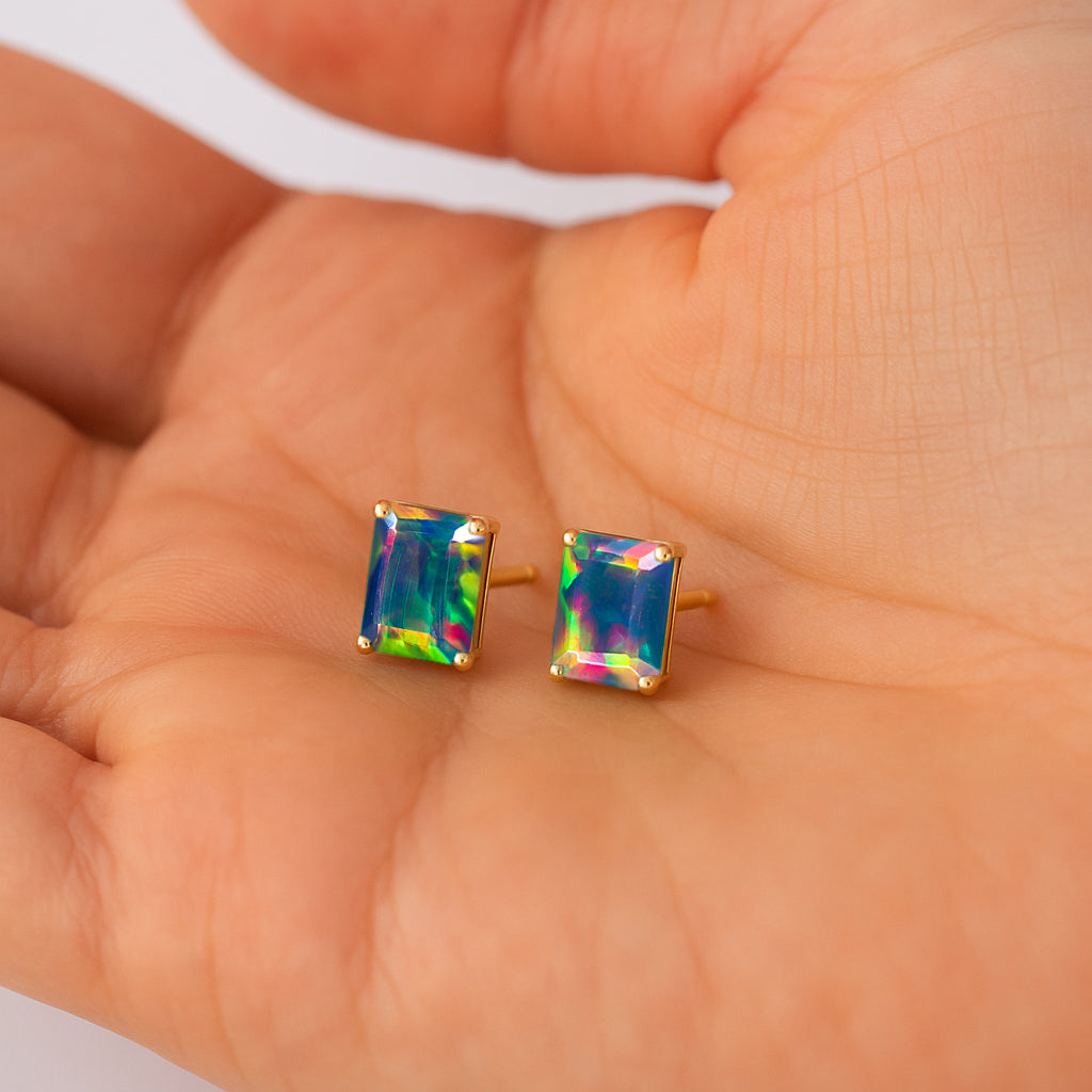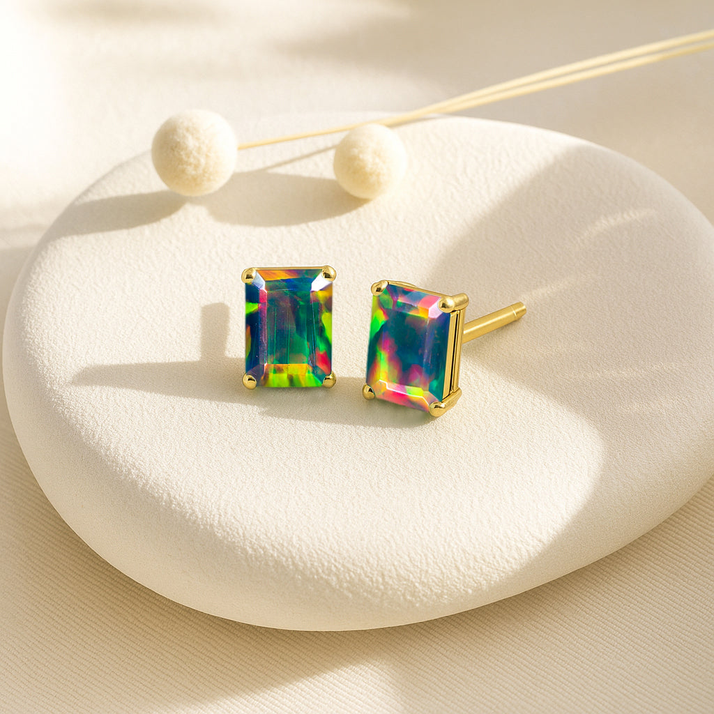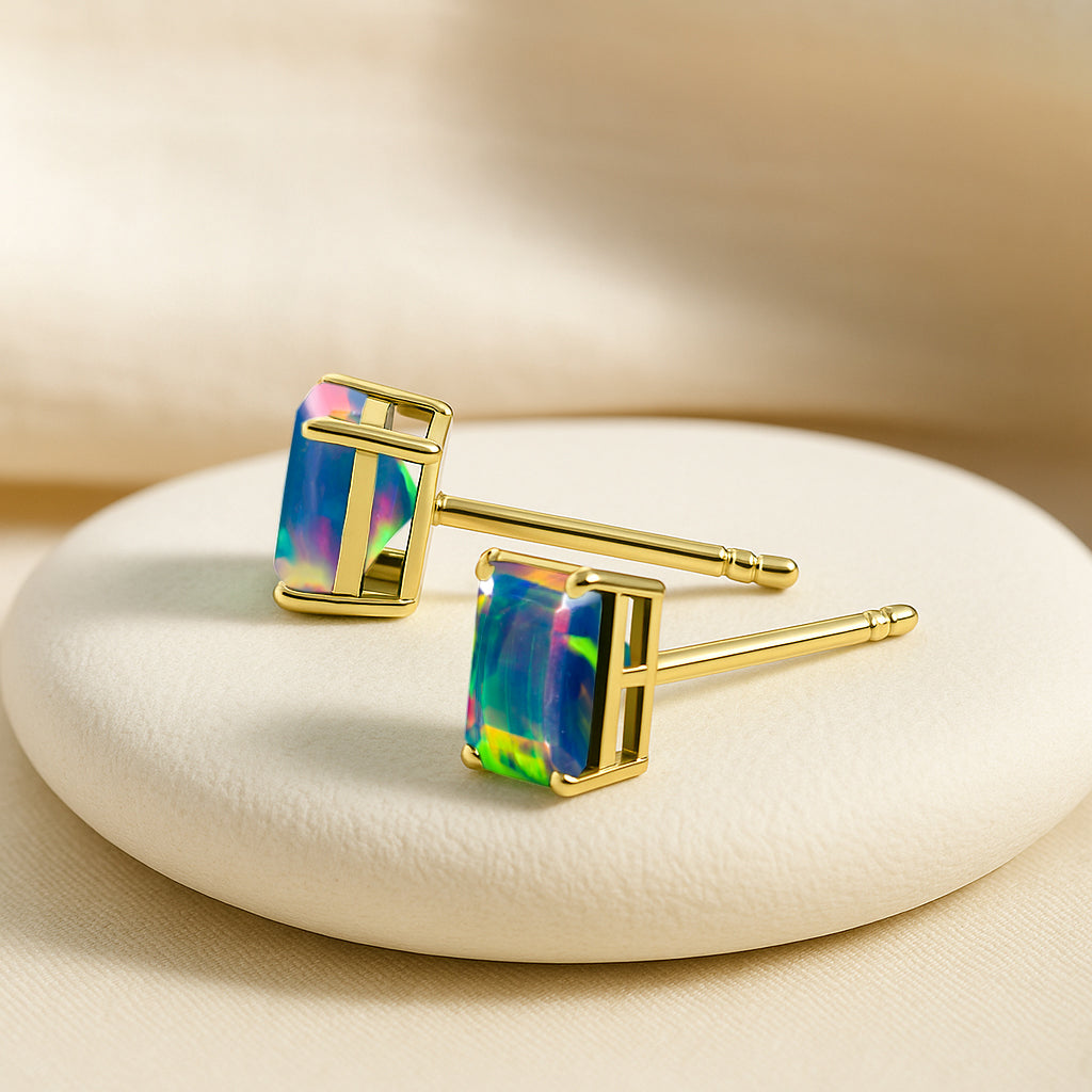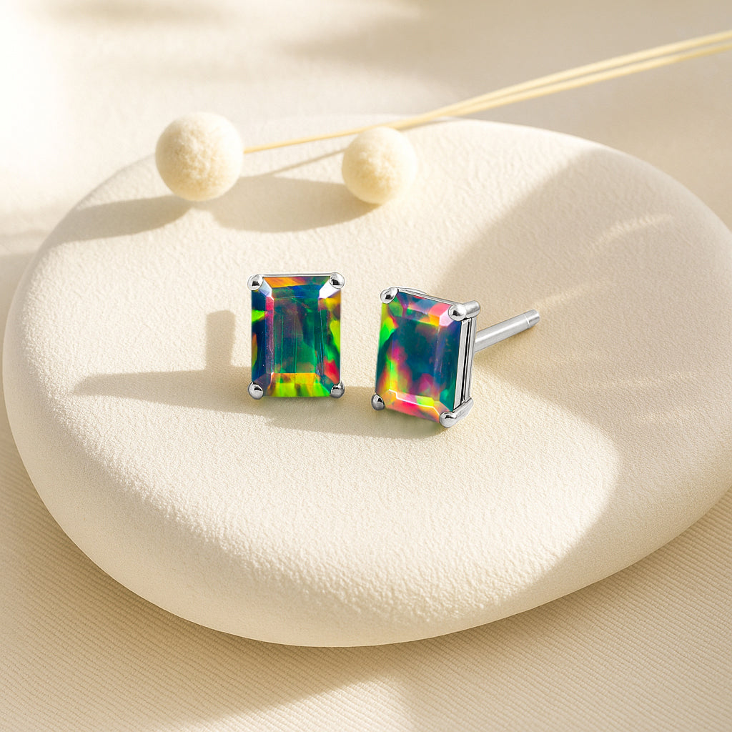 Black OpalExperience timeless elegance with these Black Opal Octagon Stud Earrings, crafted in premium 925 sterling silver. Featuring a vibrant 7x5 mm black opal cut in a striking hexagon face, each stud offers a refined 0.75-carat brilliance. Lightweight at approximately 0.70 g, they provide comfortable all-day wear. Perfect for adding a touch of luxury to any look, these earrings blend classic beauty with modern sophistication. Ideal for gifting or personal style.