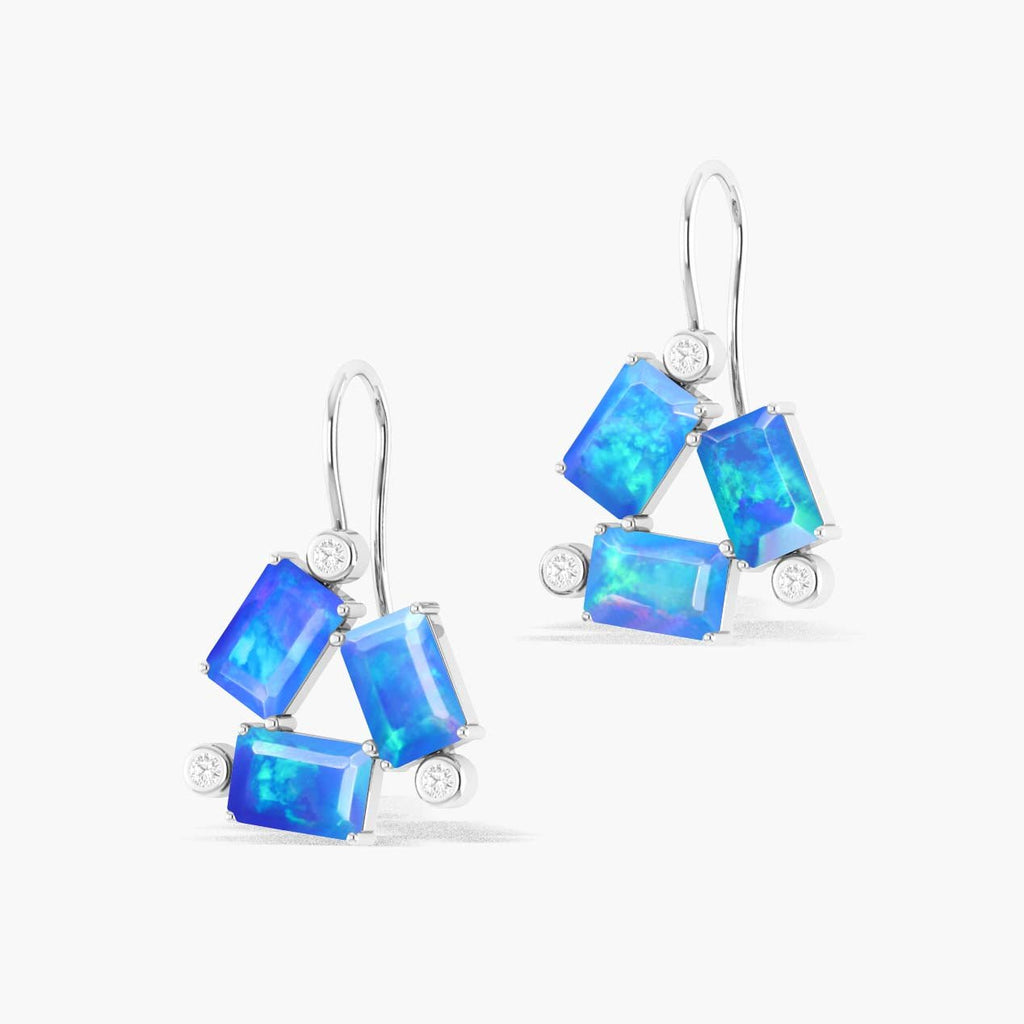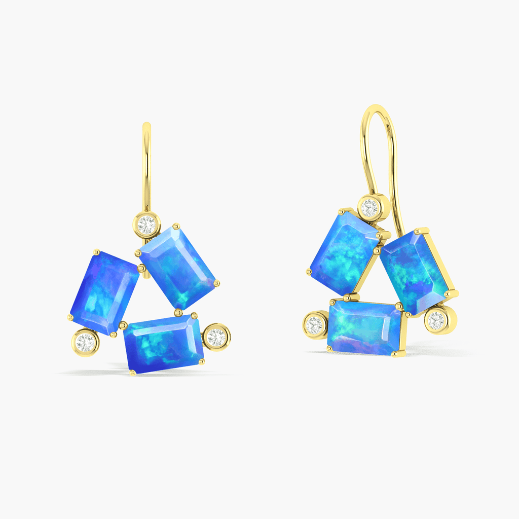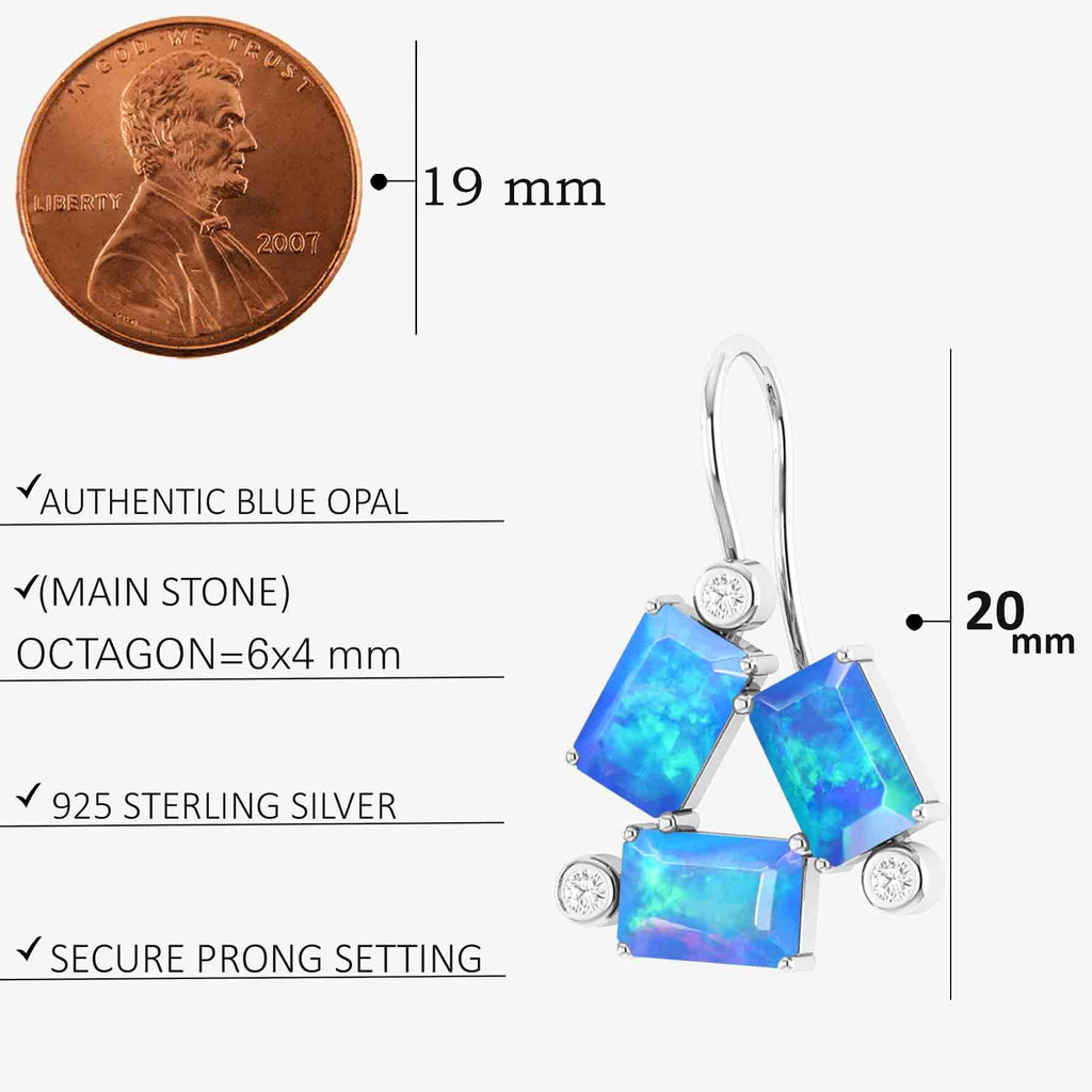 Blue OpalIntroducing the Blue Opal Dangle Earring! This beautiful earring features a octagon gemstone of stunning blue opal. Wear it to add a touch of elegance and love to any outfit. Perfect for special occasions or everyday wear, this earring is sure to dazzle and delight.