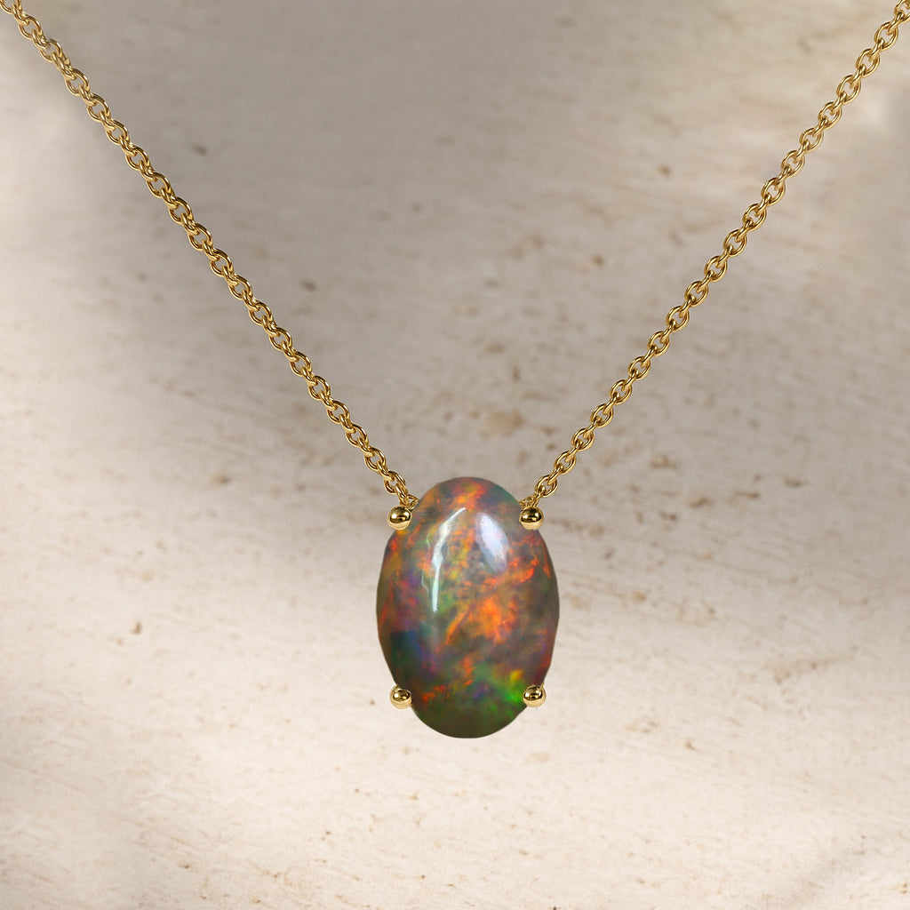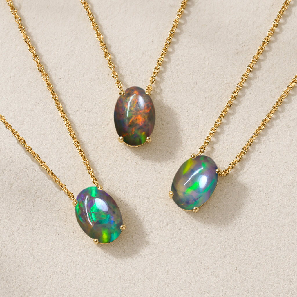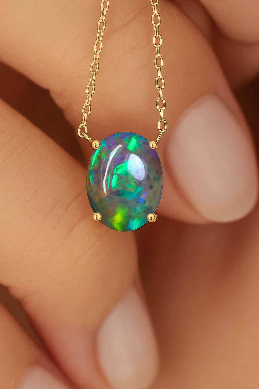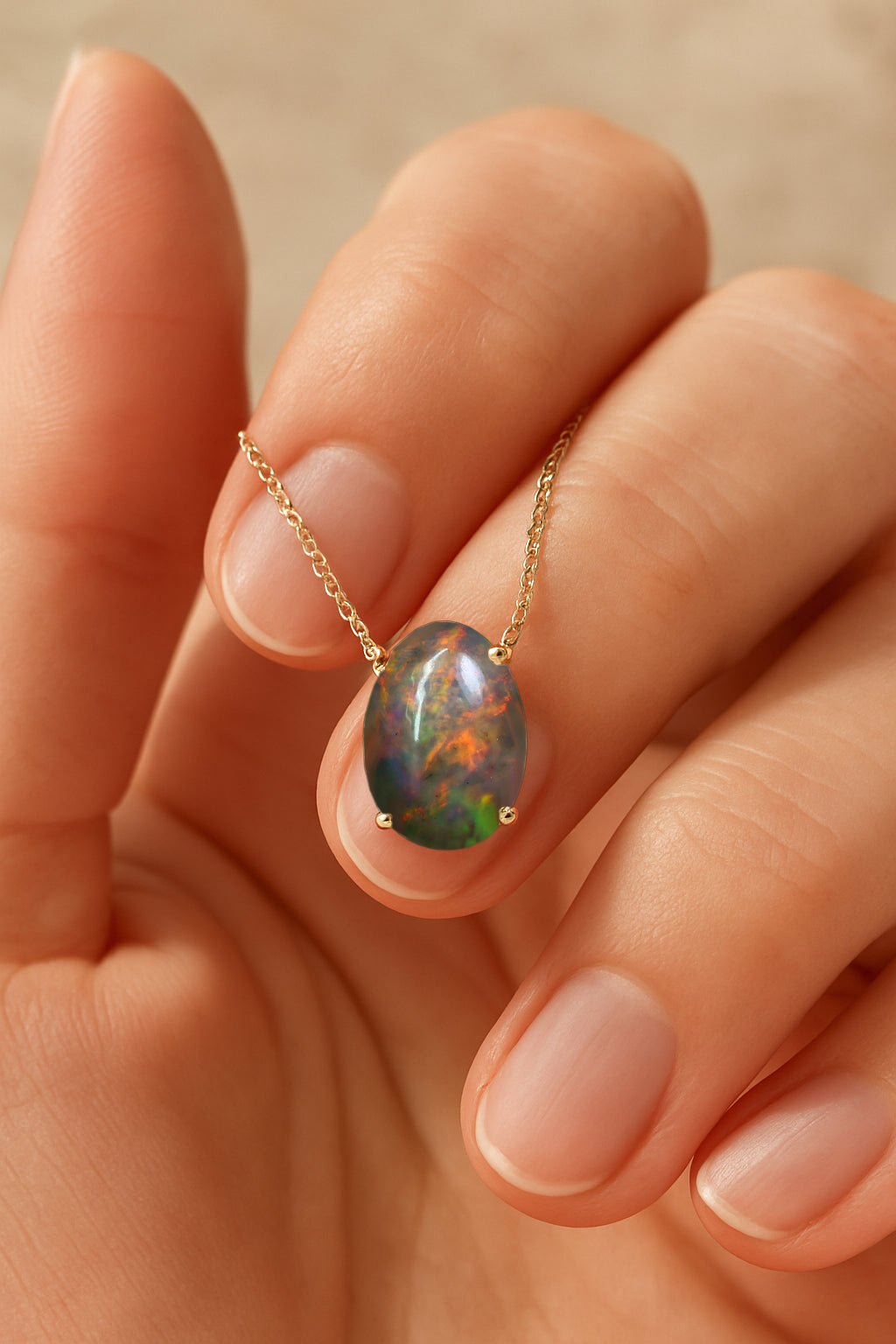 Black OpalElevate your everyday elegance with this Black Opal Oval Stone Pendant Necklace, beautifully crafted in premium 925 Sterling Silver. The smooth 8x6 mm opal gemstone (0.9 carat) showcases a soft, luminous glow, adding a touch of sophistication to any look. Its refined pendant size of 8.30x6.30 mm is perfectly paired with a 16" + 2" adjustable cable chain secured by a lobster clasp. Lightweight at approximately 0.95 gm, this necklace is ideal for daily wear or gifting. A timeless accessory that combines simplicity, charm, and modern style.