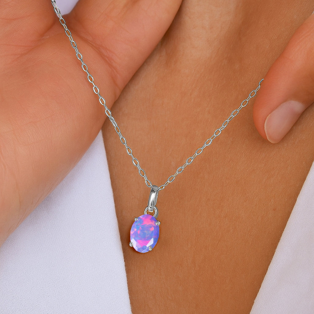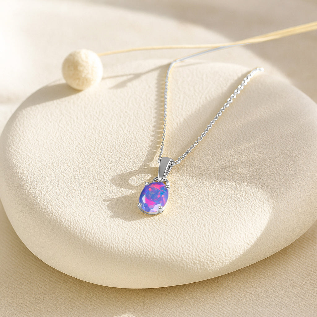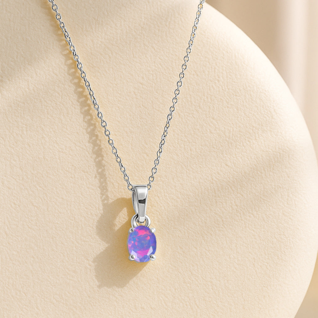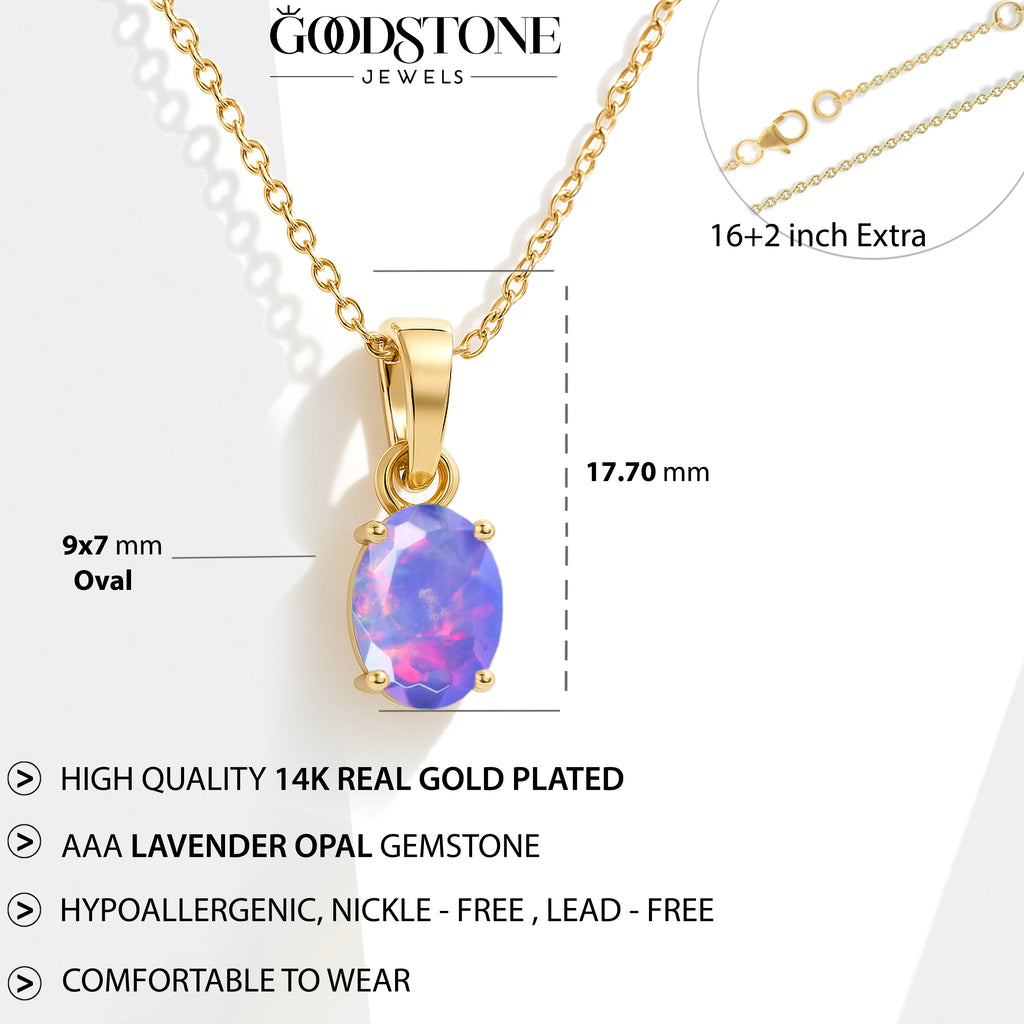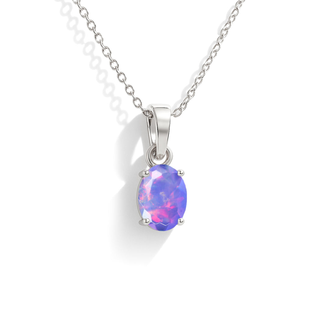Lavender OpalMake a bold statement with this Lavender Opal Oval Teardrop Pendant Necklace, crafted in premium 925 sterling silver. The smooth 9×7 mm oval-cut lavender opal, weighing 1.20 carat, reveals captivating flashes of color within its dark, mysterious sheen. The 17.70×7.00 mm pendant hangs from a 16″ + 2″ adjustable cable chain, offering comfort and versatility. With an approximate weight of 1.60 g, this piece blends elegance and modern allure perfect for any jewelry collection.