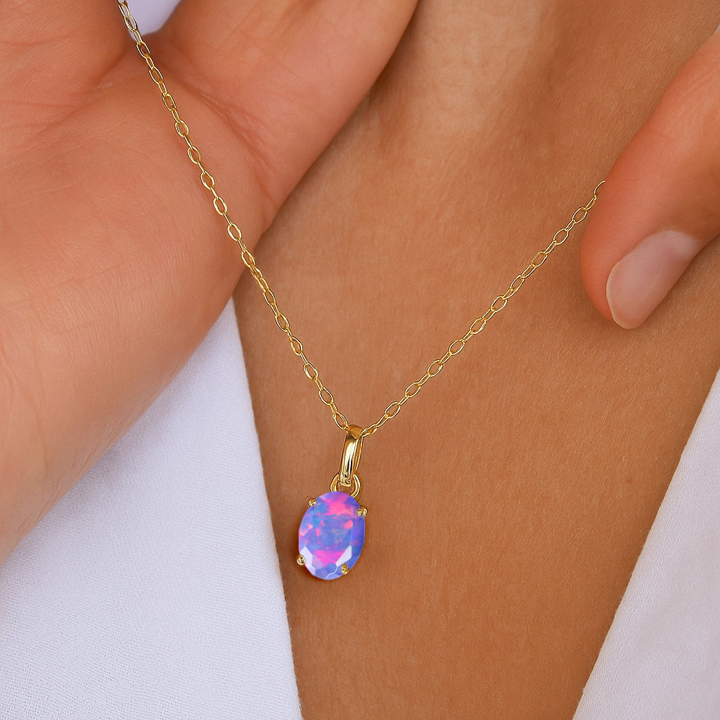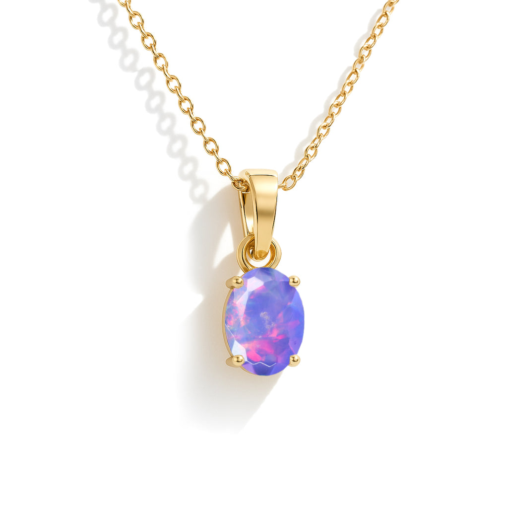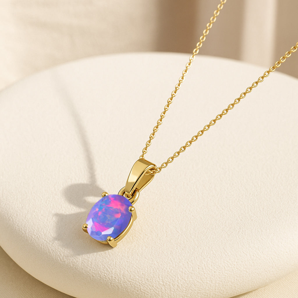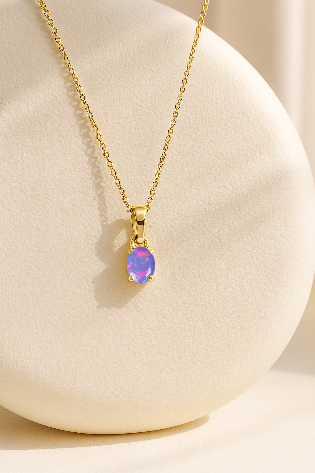 Lavender OpalMake a bold statement with this Lavender Opal Oval Teardrop Pendant Necklace, crafted in premium 925 sterling silver. The smooth 9×7 mm oval-cut lavender opal, weighing 1.20 carat, reveals captivating flashes of color within its dark, mysterious sheen. The 17.70×7.00 mm pendant hangs from a 16″ + 2″ adjustable cable chain, offering comfort and versatility. With an approximate weight of 1.60 g, this piece blends elegance and modern allure perfect for any jewelry collection.