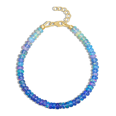 This Handmade Blue Opal Plain Beaded Bracelet : Crafted with care and precision, this stunning blue opal beaded bracelet is a must-have for any jewelry lover. Featuring plain shaded opal beads in a delicate arrangement, each bracelet is handmade with premium 925 sterling silver and yellow gold-filled accents, offering both durability and luxurious shine.