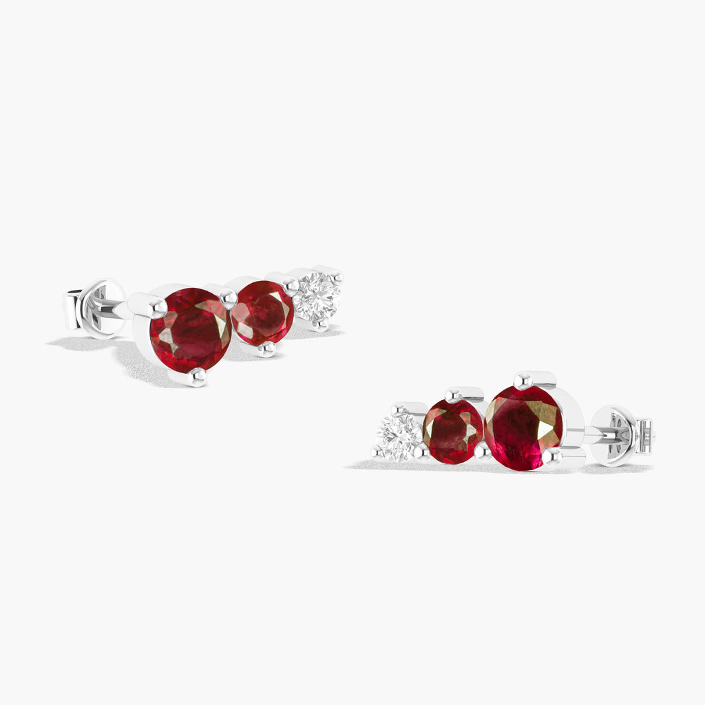 RubyVibrant ruby round stud earrings crafted in 925 sterling silver, featuring 4mm and 3mm rubies accented with 2mm sparkling CZ. Total 1.5ct weight with a secure push-back closure. Lightweight and elegant, perfect for everyday wear or adding a refined pop of color.