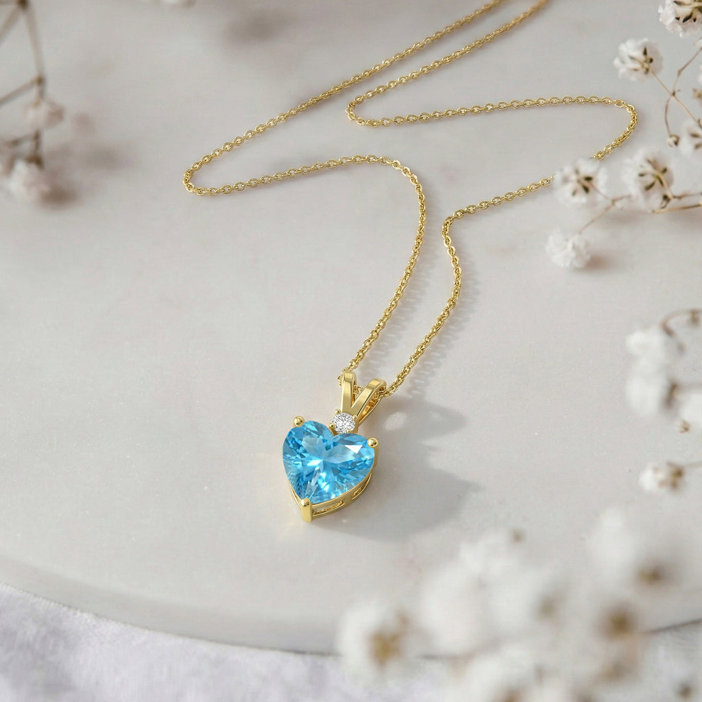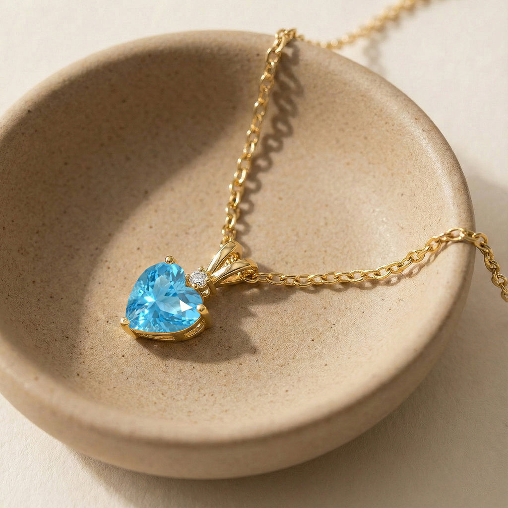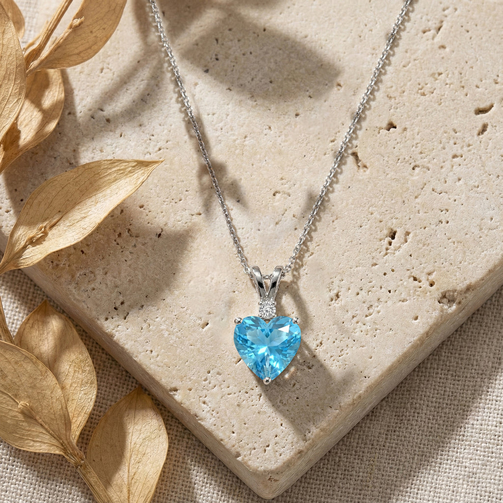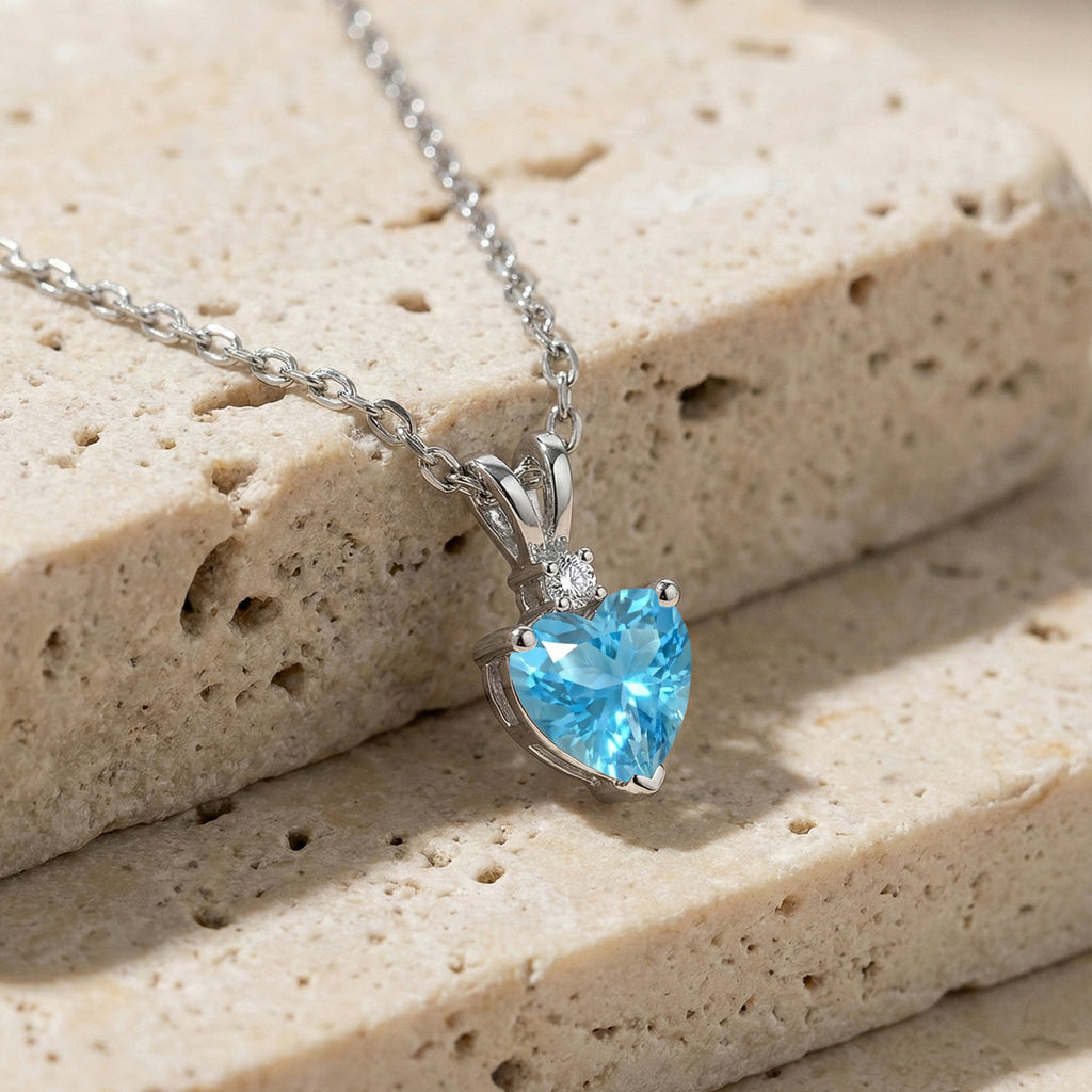 Add sparkle and elegance with this Natural Blue Topaz Heart Pendant Necklace in 925 Sterling Silver. Featuring a 7mm, 1.5ct faceted heart-shaped Blue Topaz, the pendant measures 12.5x7mm and hangs on a 16"+2" adjustable cable chain. Lightweight at 3.5g, it’s perfect for everyday wear or special occasions. The vibrant blue hue of Natural Blue Topaz symbolizes calm, clarity, and love, making this pendant a timeless gift or a stunning addition to any jewelry collection.