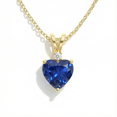 Blue Sapphire Heart Pendant Necklace in Yellow Gold Plated 1.5ct