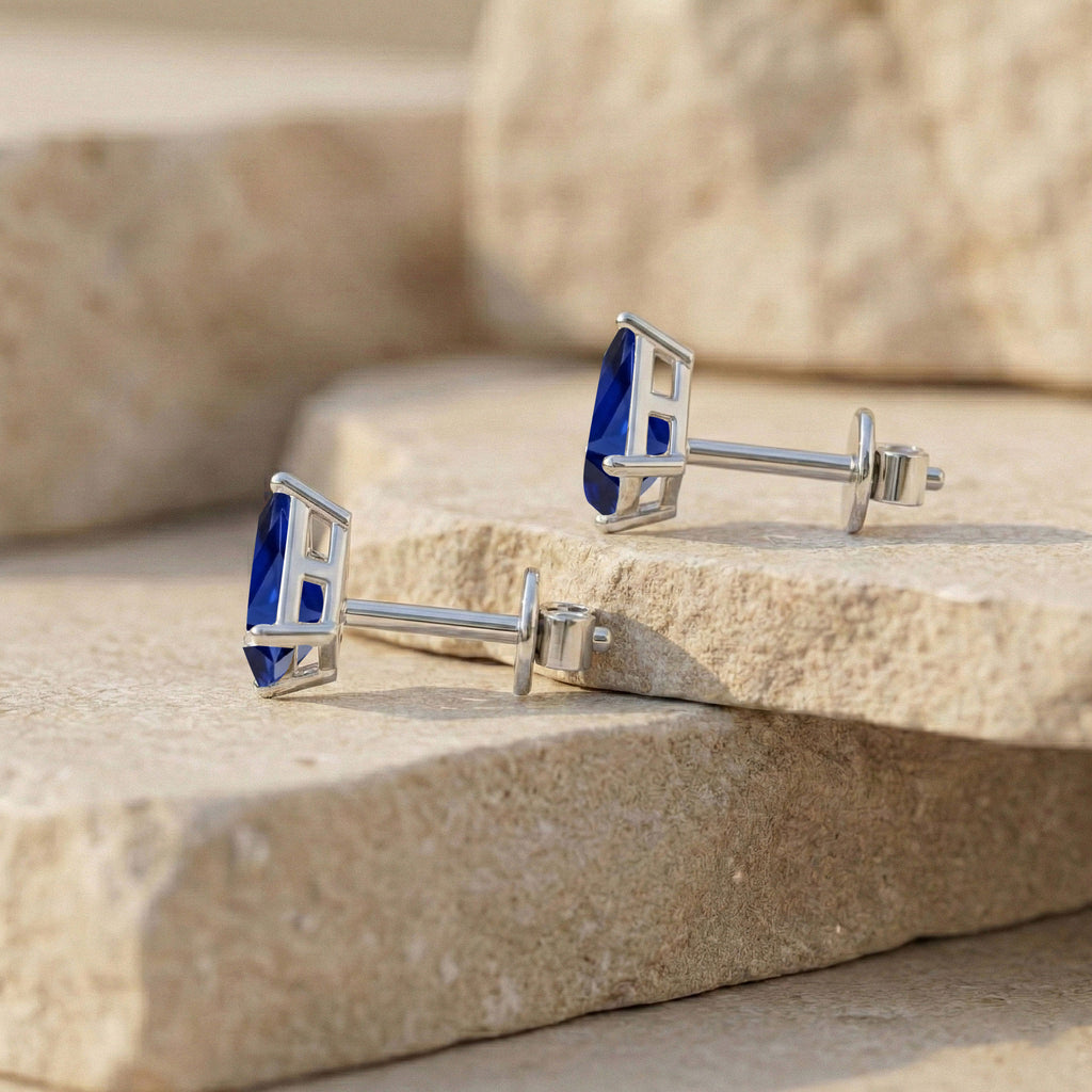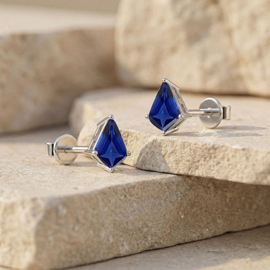 Blue Sapphire Kite Stud Earrings in 925 Sterling Silver 7x5 MM 1.50ct