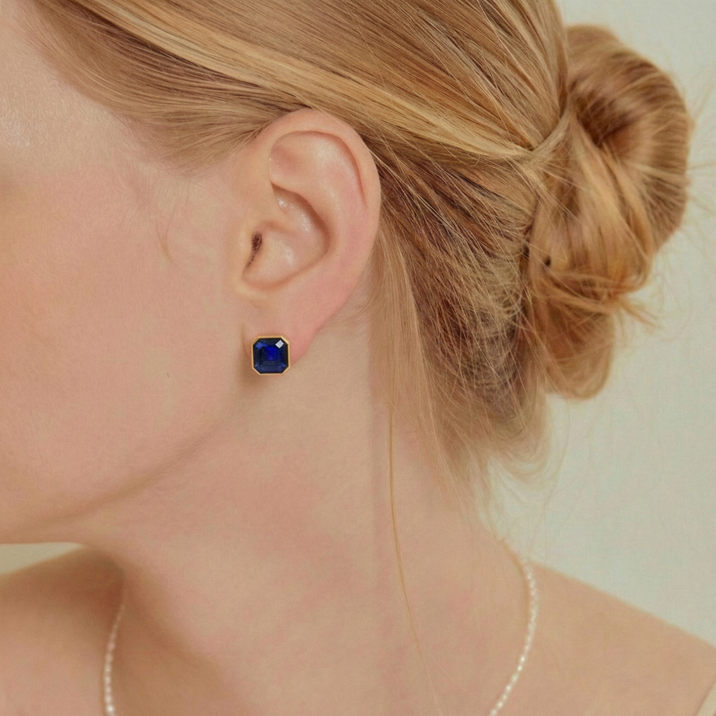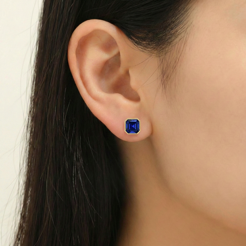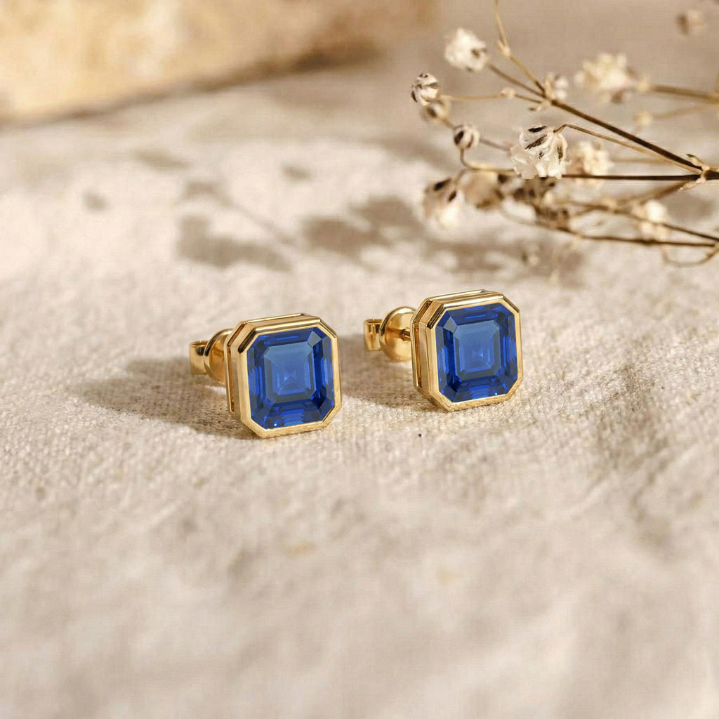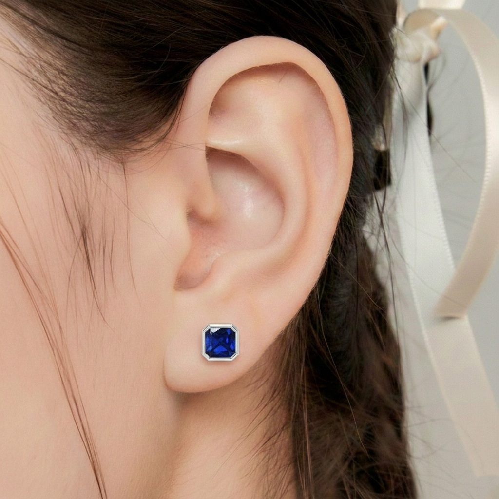 Elevate your style with these Blue Sapphire Octagon Stud Earrings in 925 Sterling Silver. Featuring 6 MM octagon faceted blue sapphire gemstones with an approximate 2 carat total weight, these blue sapphire stud earrings display a deep royal blue brilliance. The stones measure approximately 7.71 x 7.70 MM with a total weight of 1.80 GM, making them a timeless gemstone accessory perfect for everyday elegance or special occasions.
