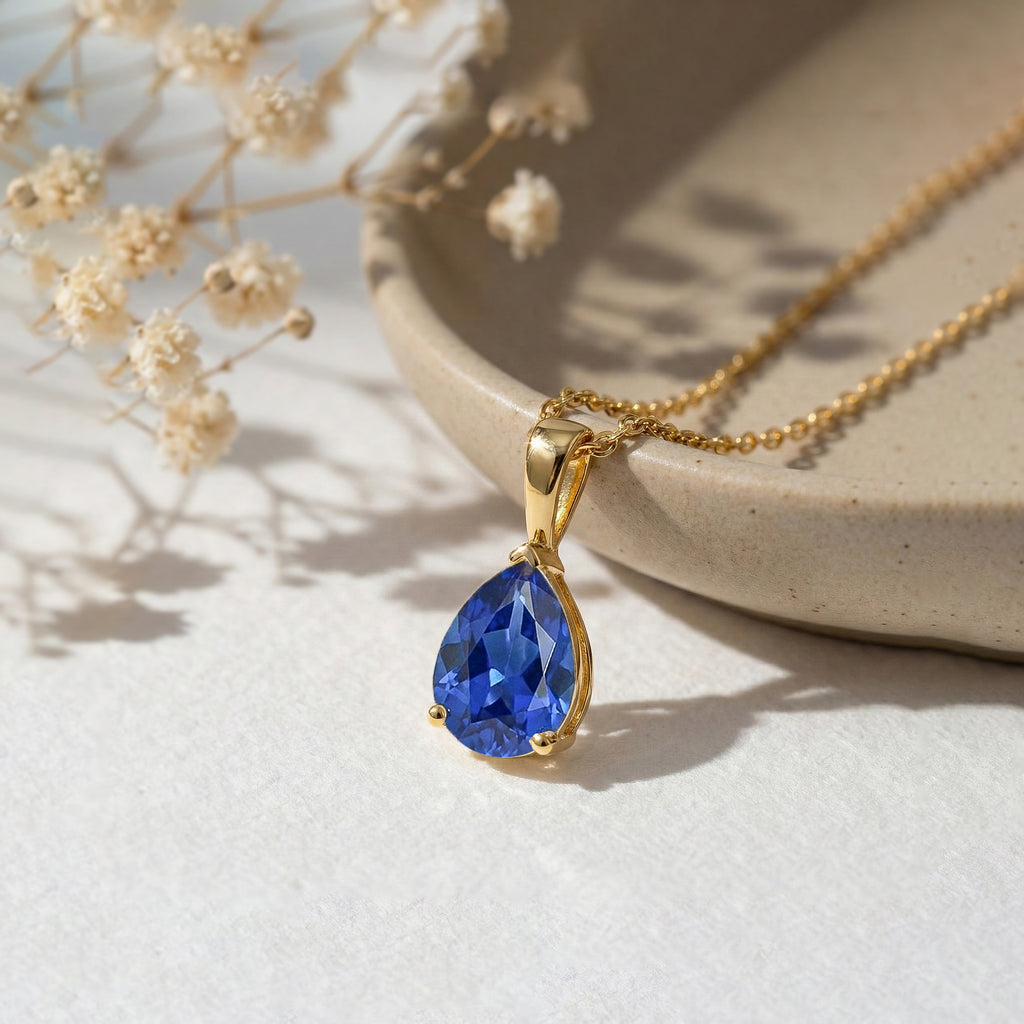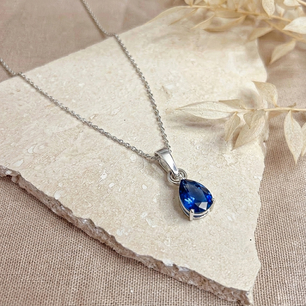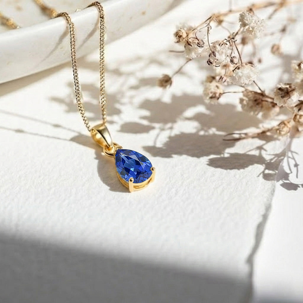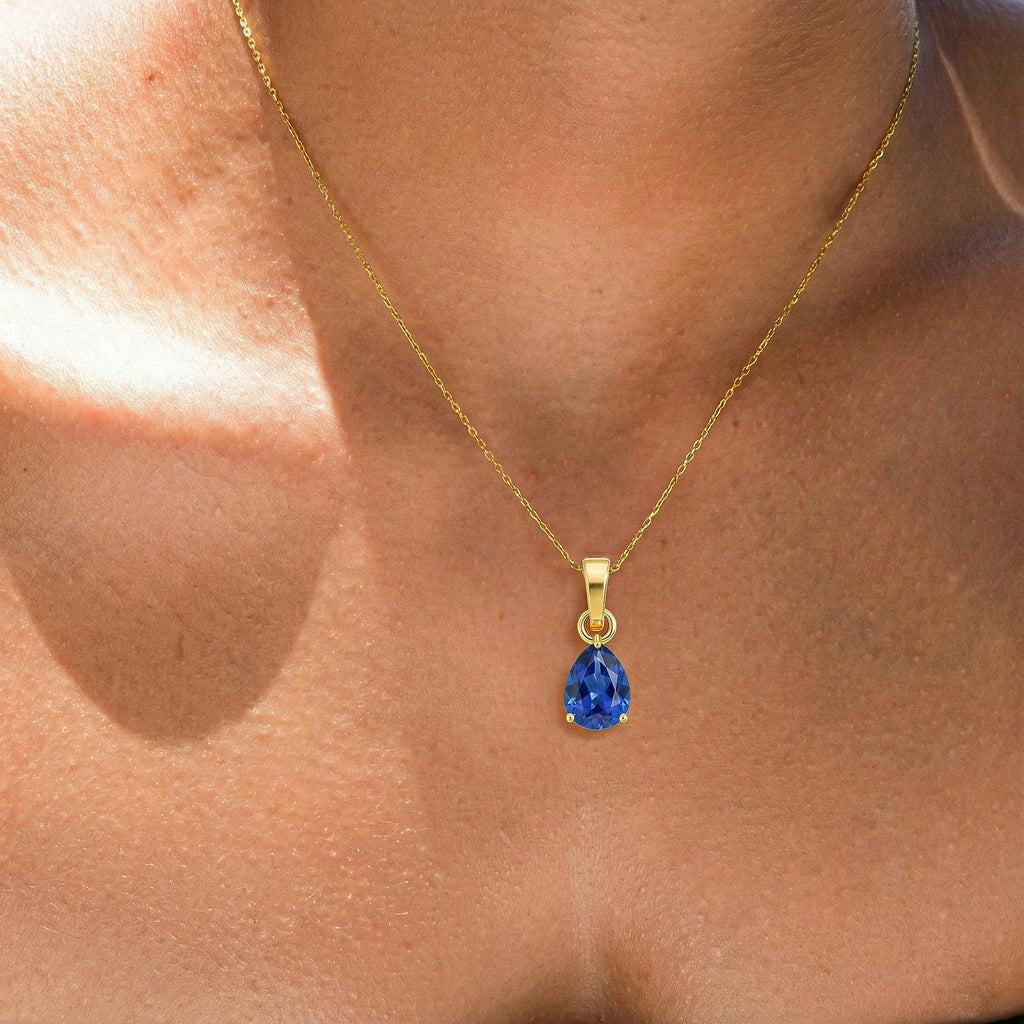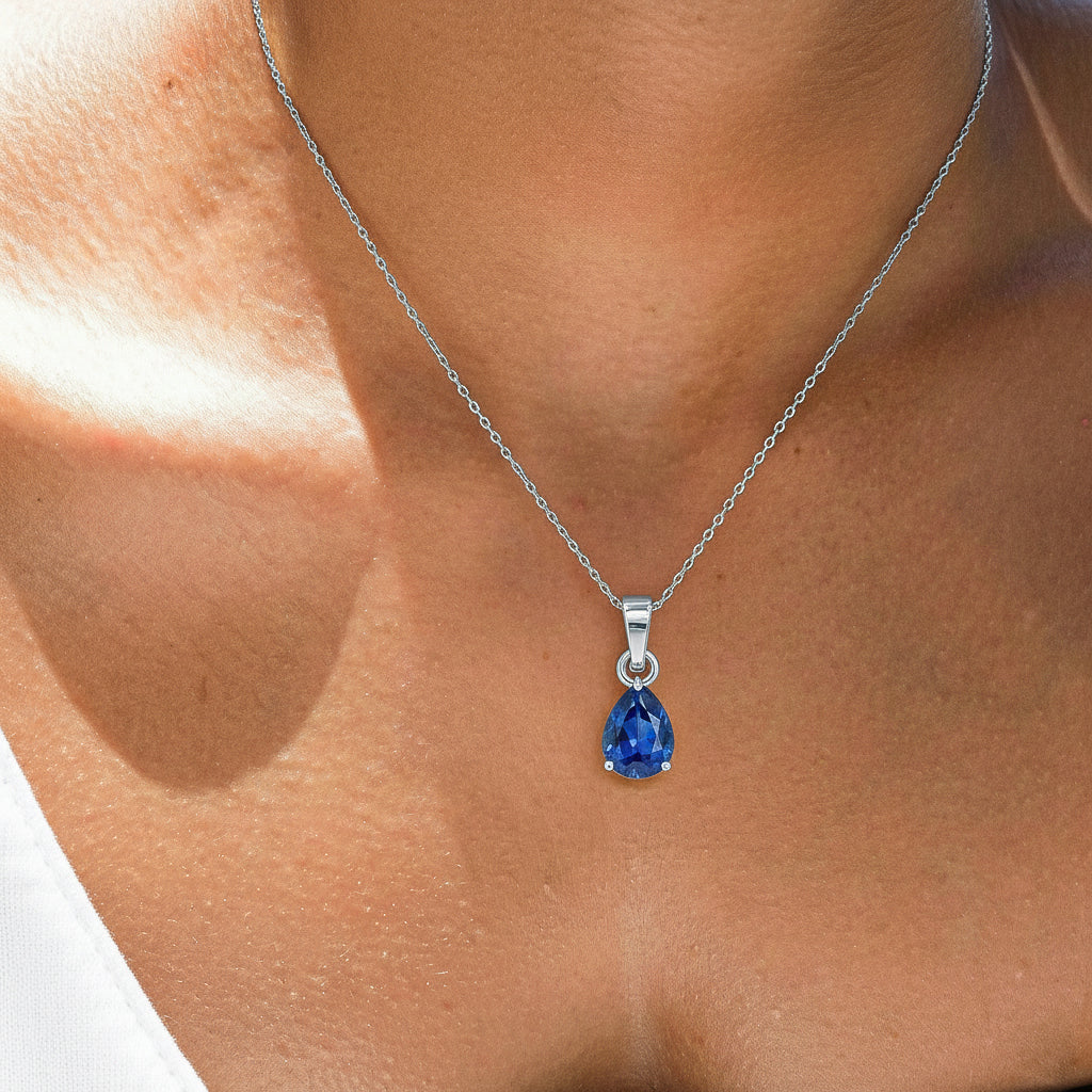 Blue Sapphire Pear Solitaire Teardrop Pendant Necklace in 925 Sterling Silver 9x7 MM 1.4ct