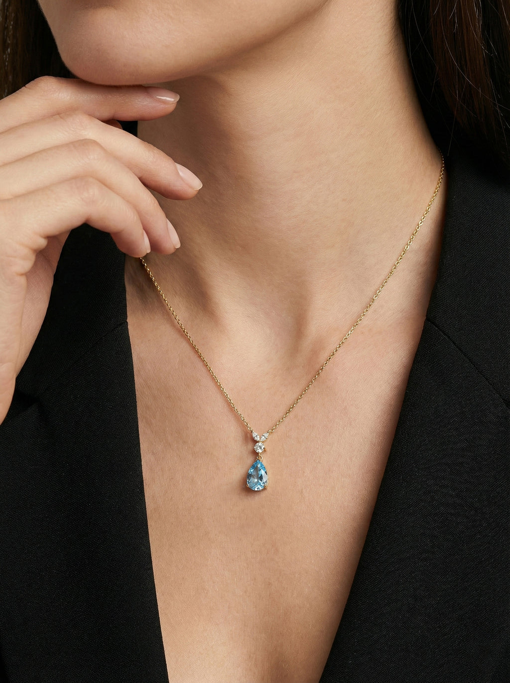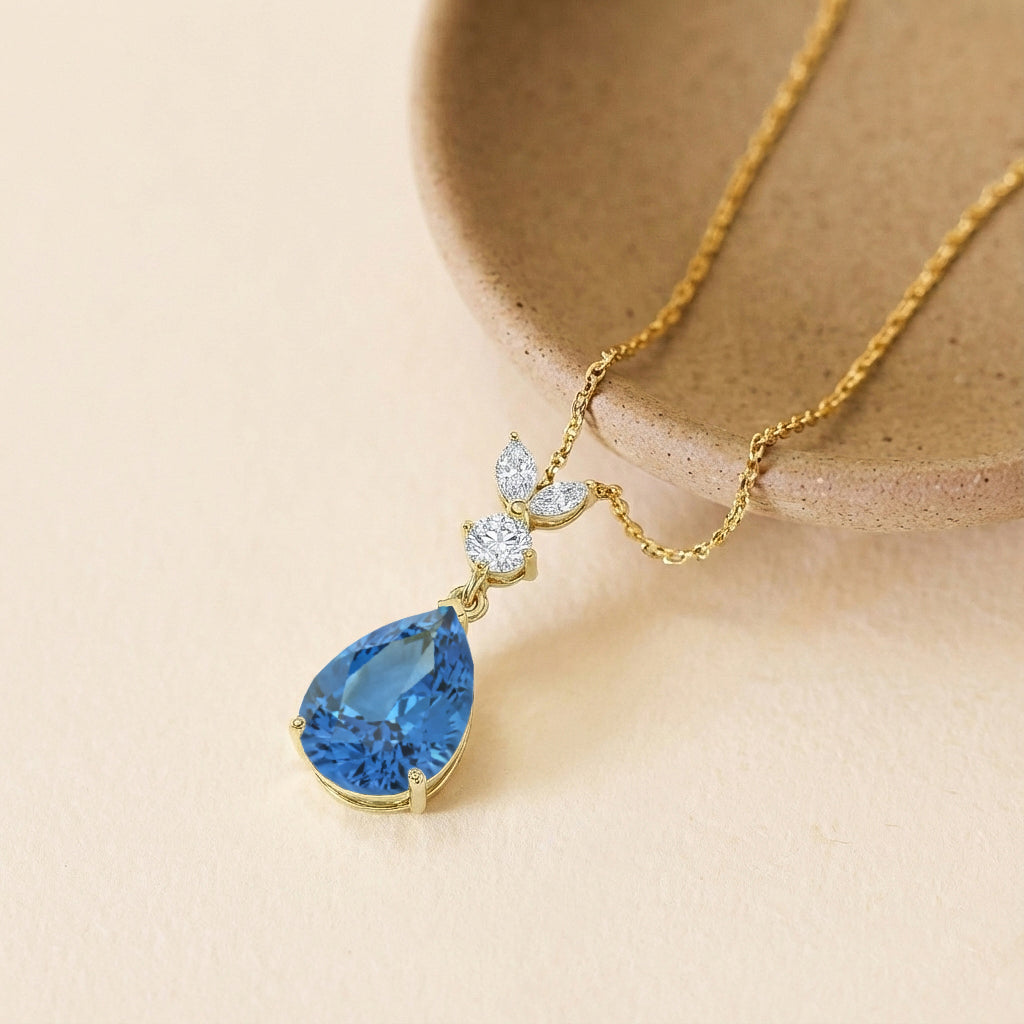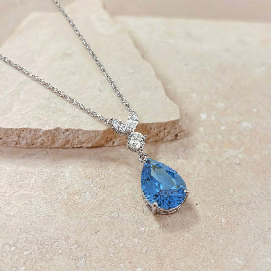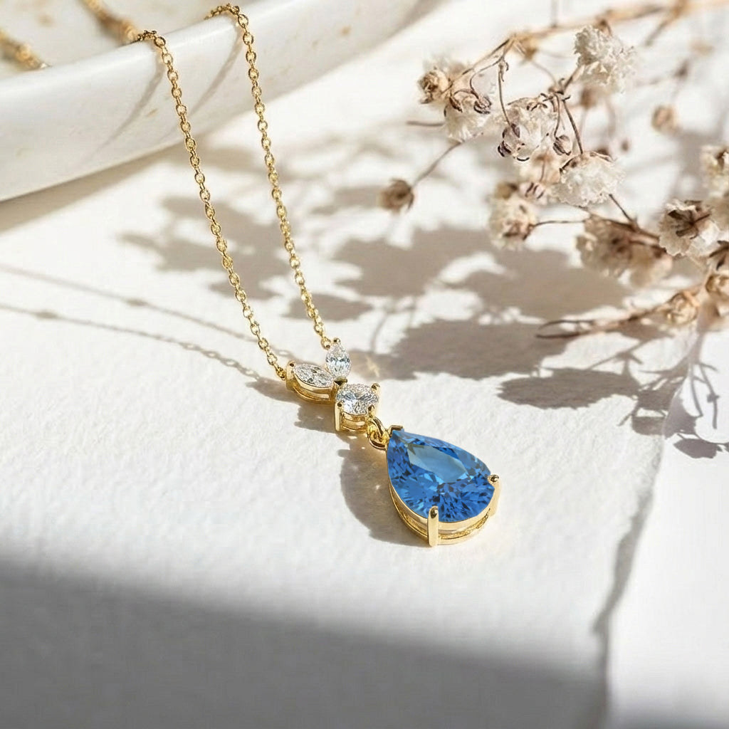 This Natural Blue Topaz Pear Teardrop Pendant Necklace is crafted in 925 sterling silver and features a 1.70 CT faceted pear-shaped Blue Topaz (10x7 mm). The pendant measures 21.06 x 7.31 mm and weighs approximately 1.70 g. It comes with a 16” + 2” adjustable sterling silver cable chain and a secure lobster clasp. A vibrant blue gemstone necklace perfect for everyday elegance or special occasions.