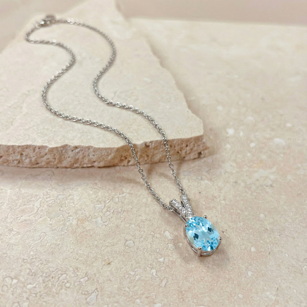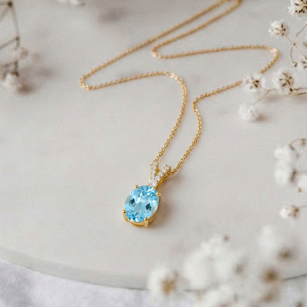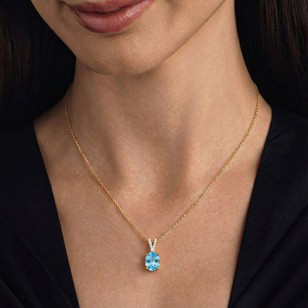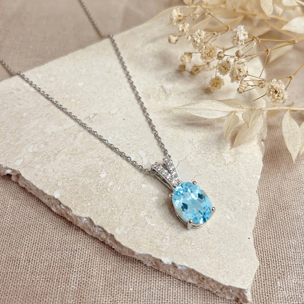 Natural Blue Topaz Solitaire Pendant Necklace in 925 Sterling Silver features a radiant 1.2ct oval-cut blue topaz (8x6mm) with brilliant faceted sparkle. Crafted in a classic solitaire setting, the pendant measures 15.81 x 6.84mm and hangs gracefully from a 16” + 2” adjustable cable chain with a secure lobster clasp. Made from premium sterling silver, this elegant blue topaz necklace offers refreshing color, timeless style, and everyday comfort—perfect for gifting or adding sophistication to any look.