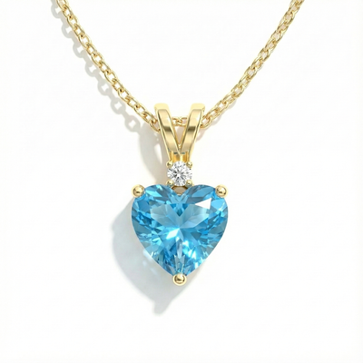 Blue Topaz Heart Pendant Necklace in Yellow Gold Plated 1.5ct