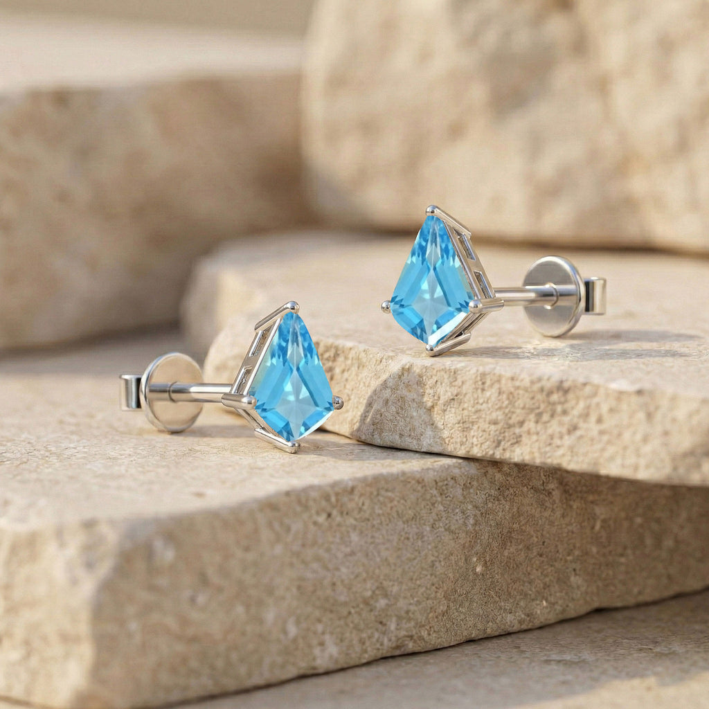 Blue Topaz Kite Stud Earrings in 925 Sterling Silver 7x5 MM 1.50ct