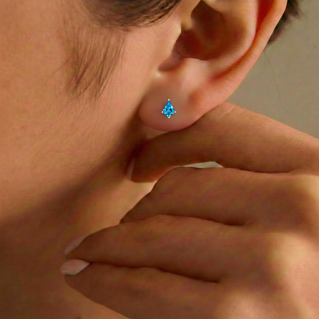 Add a refreshing sparkle to your collection with these Blue Topaz Kite Stud Earrings crafted in genuine 925 sterling silver. Featuring four 7x5 mm kite-shaped faceted blue topaz stones totaling approximately 1.50 carats, these studs showcase brilliant sky-blue shine and crisp clarity. Each earring measures 8.05 x 6.09 mm with a combined weight of 1.05 grams, offering a lightweight and comfortable fit for everyday wear. Perfect as a December birthstone gift or a timeless accessory, these sterling silver blue topaz earrings blend modern style with classic elegance.