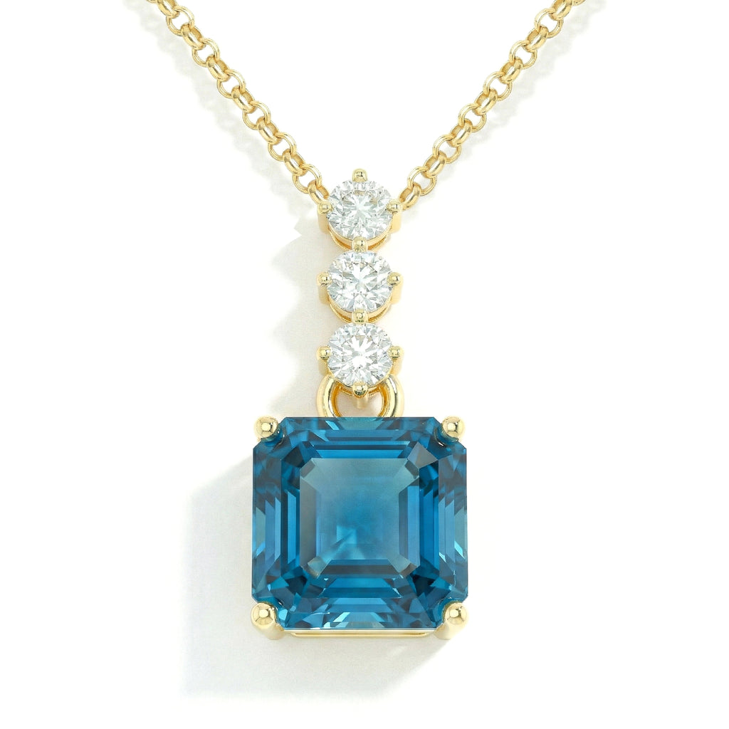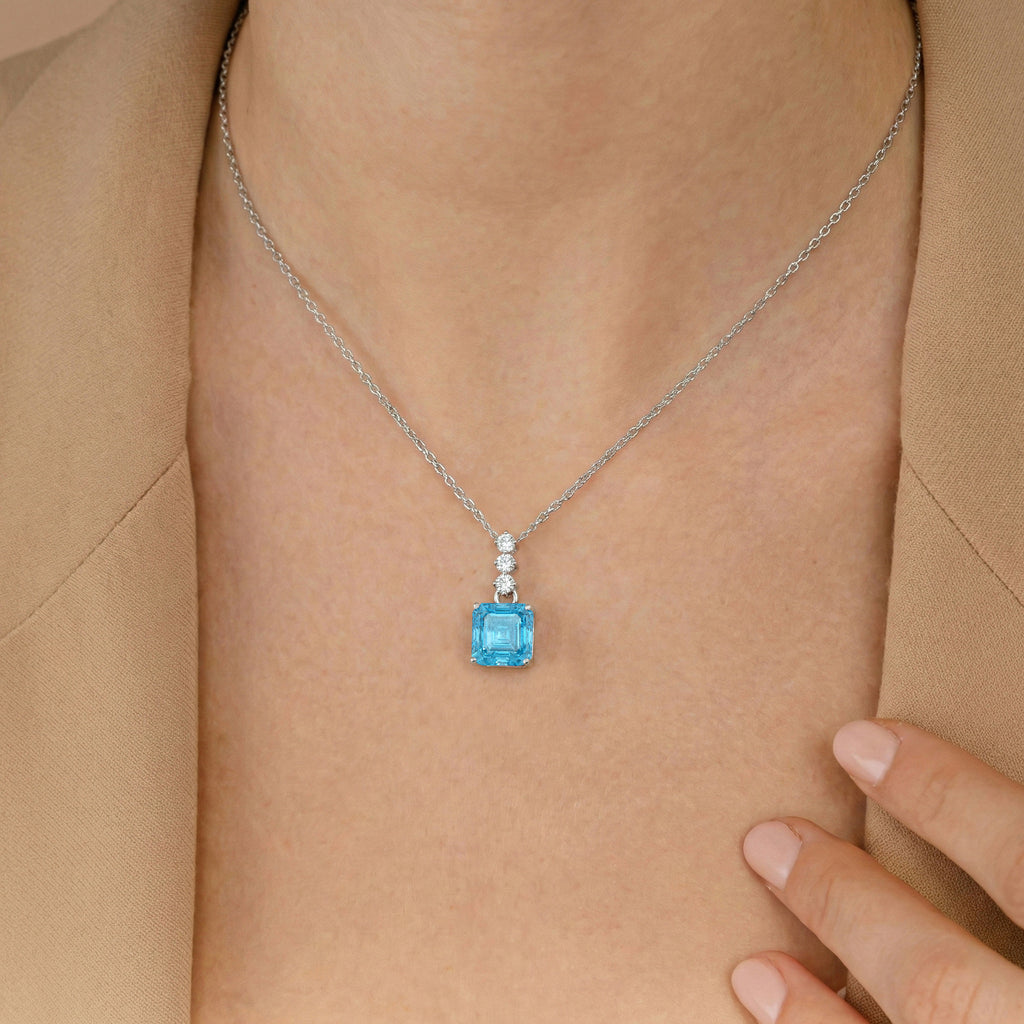 Blue Topaz Octagon Solitaire Pendant Necklace in 925 Sterling Silver 8 MM 2ct