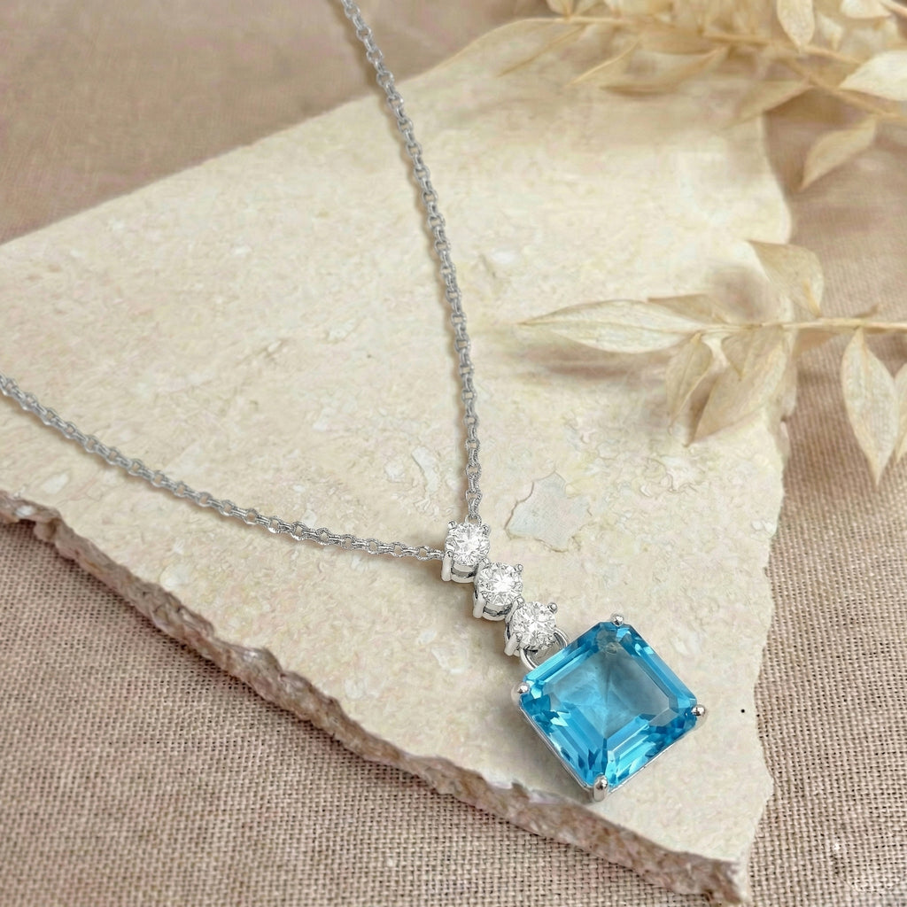 Add sparkling elegance with this Blue Topaz Octagon Solitaire Pendant Necklace in 925 sterling silver. Featuring one 8mm octagon faceted blue topaz (approx. 2 carats), this bright blue gemstone radiates timeless charm. The pendant measures 19.34 x 8.30 mm and hangs from a 16” + 2” adjustable cable chain with a secure lobster clasp. Total weight is approximately 5.20 grams with chain. A perfect December birthstone necklace and sterling silver gemstone jewelry piece for everyday wear or special occasions.