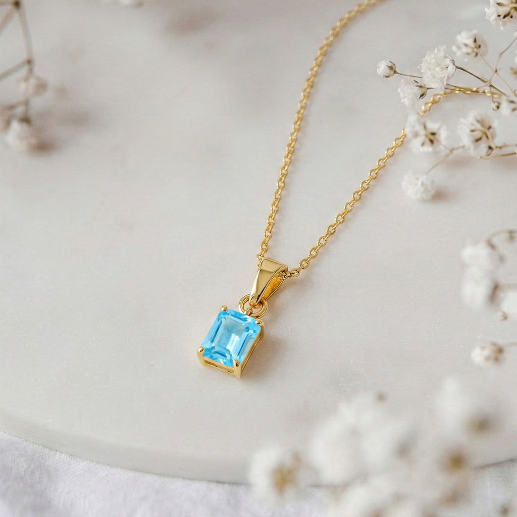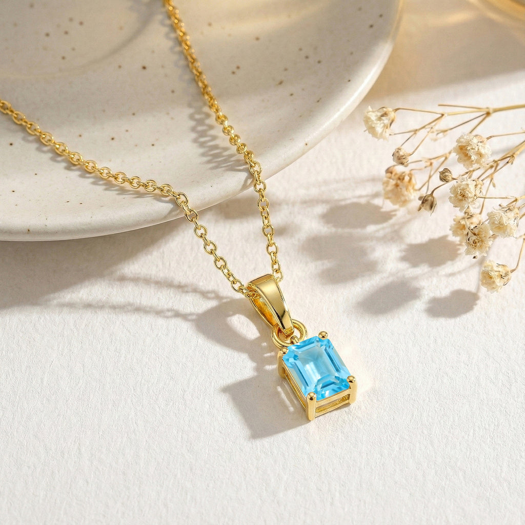 Add a touch of serene sophistication with this Blue Topaz Octagon Solitaire Pendant Necklace. Featuring a faceted 9x7 mm octagon-shaped blue topaz (approx. 1.4 carats), this elegant pendant is crafted in yellow gold plated brass for a polished, radiant finish. Measuring 17.70 x 7 mm, it hangs gracefully from a 16” + 2” adjustable cable chain with a secure lobster clasp. Perfect for everyday wear or as a thoughtful gift for someone special.