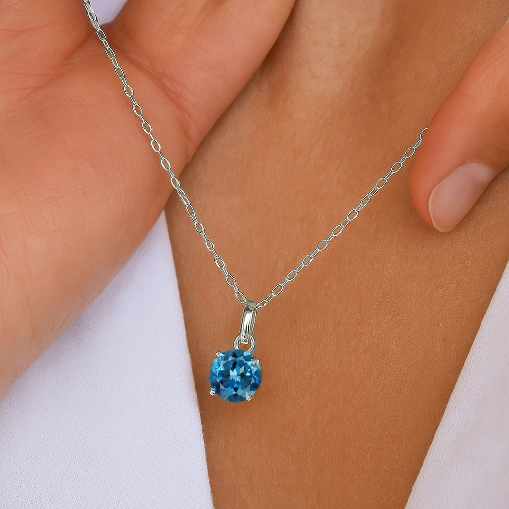 Add timeless elegance to your look with this Blue Topaz Round Teardrop Pendant Necklace, crafted in high quality 925 sterling silver. The pendant features a faceted 7 mm round Blue Topaz weighing 1.2 carat, showcasing its signature iridescent glow. Measuring 15.60×7.00 mm, it hangs delicately from a 16″ + 2″ adjustable cable chain for a perfect fit. With a lightweight 1.60 g design, this necklace brings a soft, luminous charm to any outfit ideal for both everyday wear and special occasions.