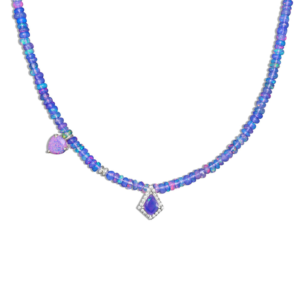 Charm Beaded Necklace with Natural Lavender Opal - Goodstone Jewels