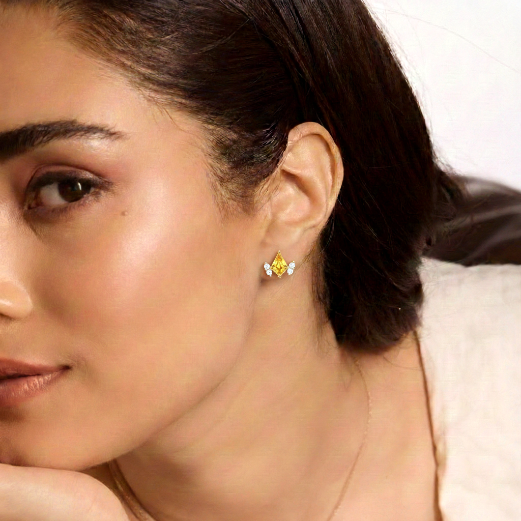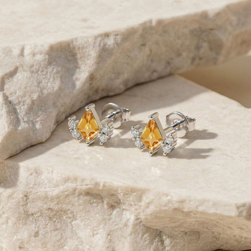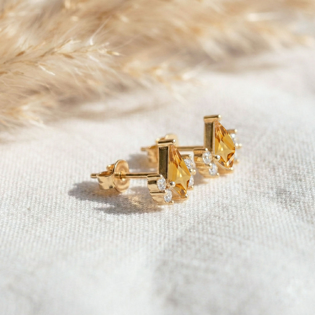 Citrine Kite Stud Earrings in 925 Sterling Silver 6x4 MM 1ct