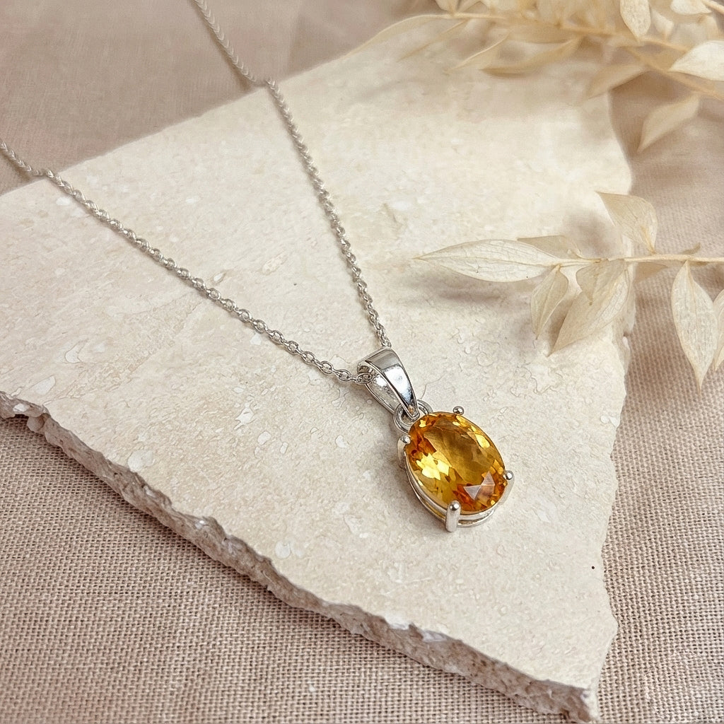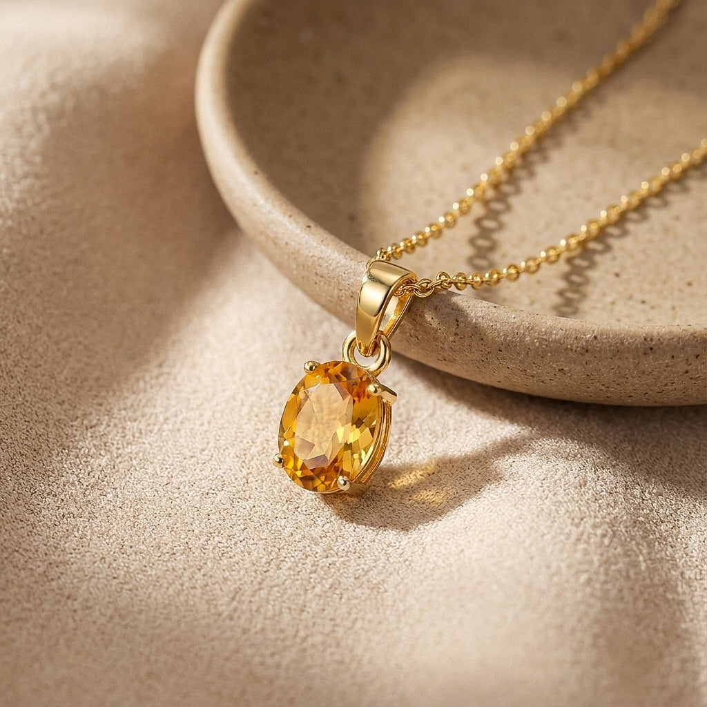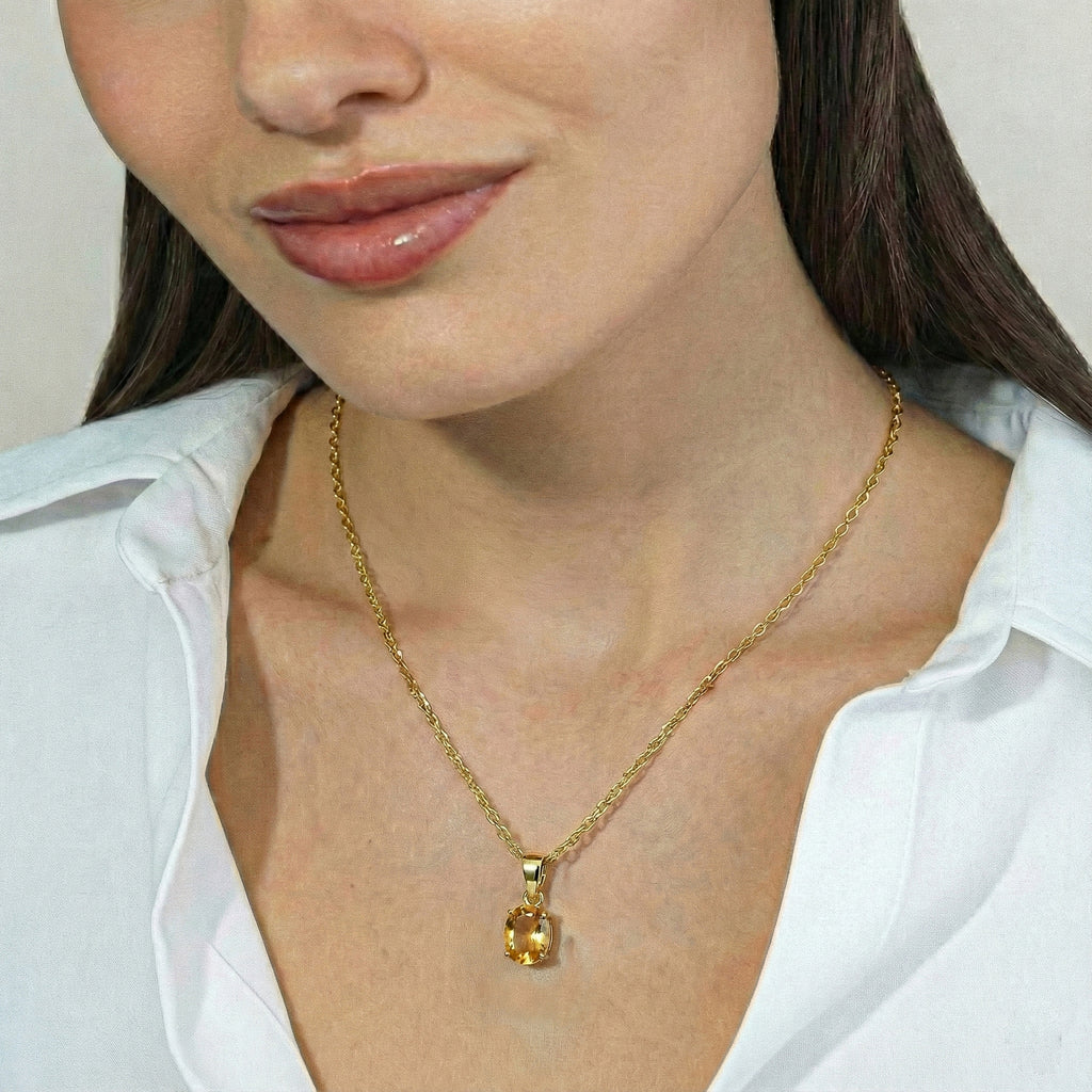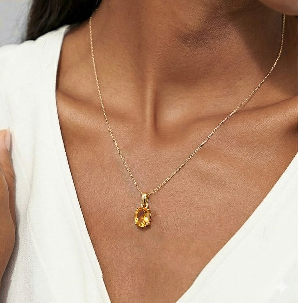 Brighten your style with this Natural Citrine solitaire pendant necklace crafted in genuine 925 sterling silver. Featuring a 9x7 mm oval faceted citrine gemstone (approx. 1.4 carat), this elegant pendant radiates warm golden brilliance. The pendant measures 17.70 x 7 mm and comes with a 16” + 2” adjustable sterling silver cable chain secured with a lobster clasp. Perfect for everyday wear, November birthstone gifts, or special occasions.