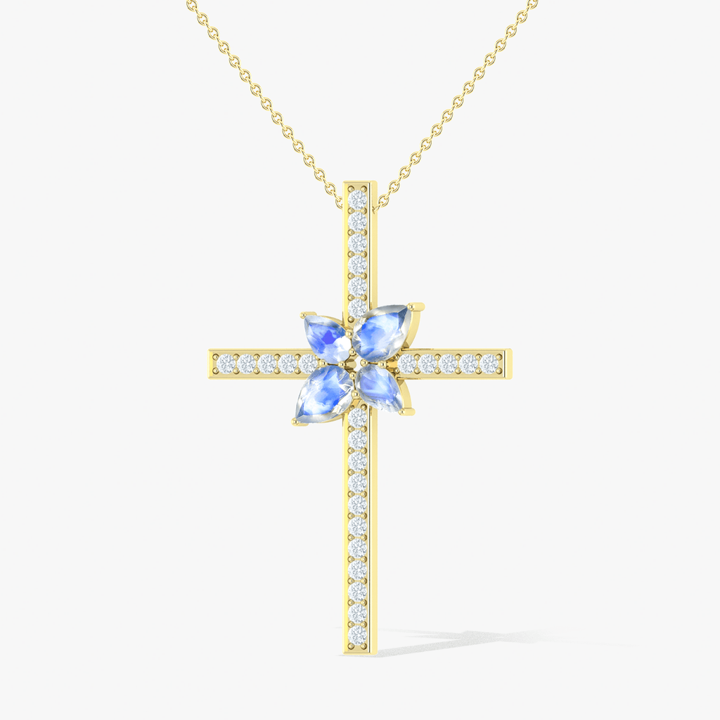 MoonstoneGOODSTONE JEWELS Cross Chain Pendant Necklace, designed to add a meaningful sparkle to your jewelry collection. Meticulously crafted in 925 sterling silver and enhanced with a luxurious yellow gold fill, this pendant showcases natural moonstone birthstones in a sophisticated cross design a symbol of strength, faith, and timeless beauty. At the heart of the pendant are four radiant pear-cut moonstones two 6x4mm and two 5x3mm — totaling 1.3 carats. These naturally unique stones shimmer with captivating hues, making each necklace one of a kind. Whether you're shopping for a birthstone gift, a personal statement piece, or a heartfelt present for a loved one, this necklace offers elegance with symbolic meaning. Designed for comfort and versatility, it includes a 16-inch chain with a 2-inch extender, allowing you to wear it at your preferred length.