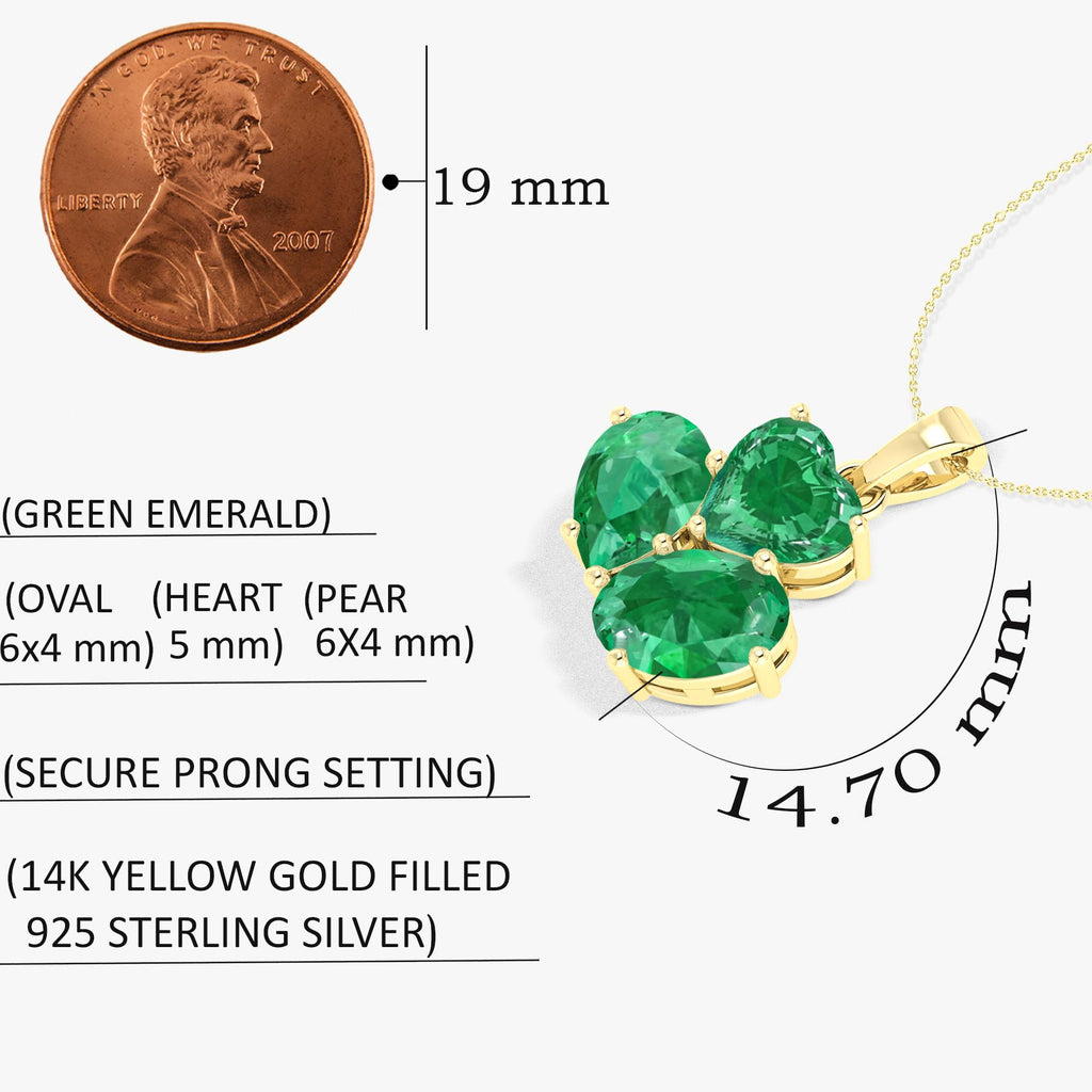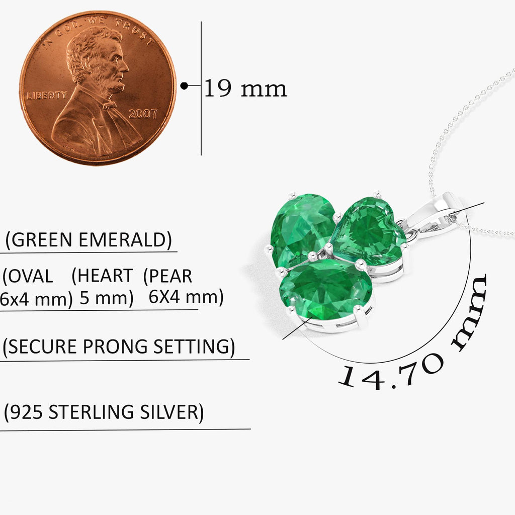 EmeraldElevate your elegance with our Emerald 3 Stone Heart Pendant Necklace, crafted in 925 sterling silver for lasting shine and sophistication. Featuring a 1.65-carat emerald centerpiece, this pendant is accented with a 5mm heart-shaped emerald and 6x4mm pear & oval-cut stones, creating a stunning three-stone design that symbolizes love, harmony, and timeless beauty. Perfect for gifting or personal indulgence, this necklace combines classic charm with modern craftsmanship.