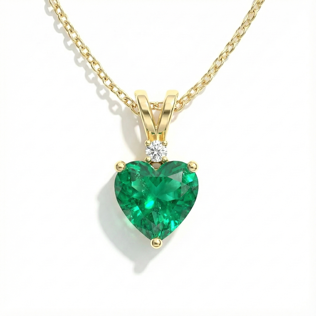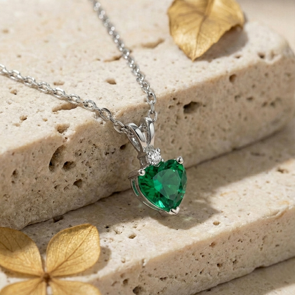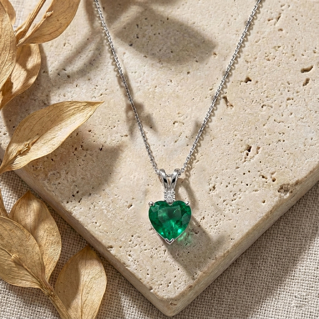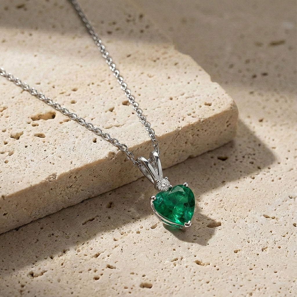 Exude elegance with this Emerald Heart Pendant Necklace in 925 Sterling Silver. Featuring a 7mm, 1.5ct faceted heart-shaped Emerald, the pendant measures 12.5x7mm and hangs on a 16"+2" adjustable cable chain. Lightweight at 3.5g, it’s perfect for everyday sophistication or special occasions. The rich green hue of Emerald symbolizes love, growth, and harmony, making this necklace a meaningful gift or a timeless addition to any jewelry collection.
