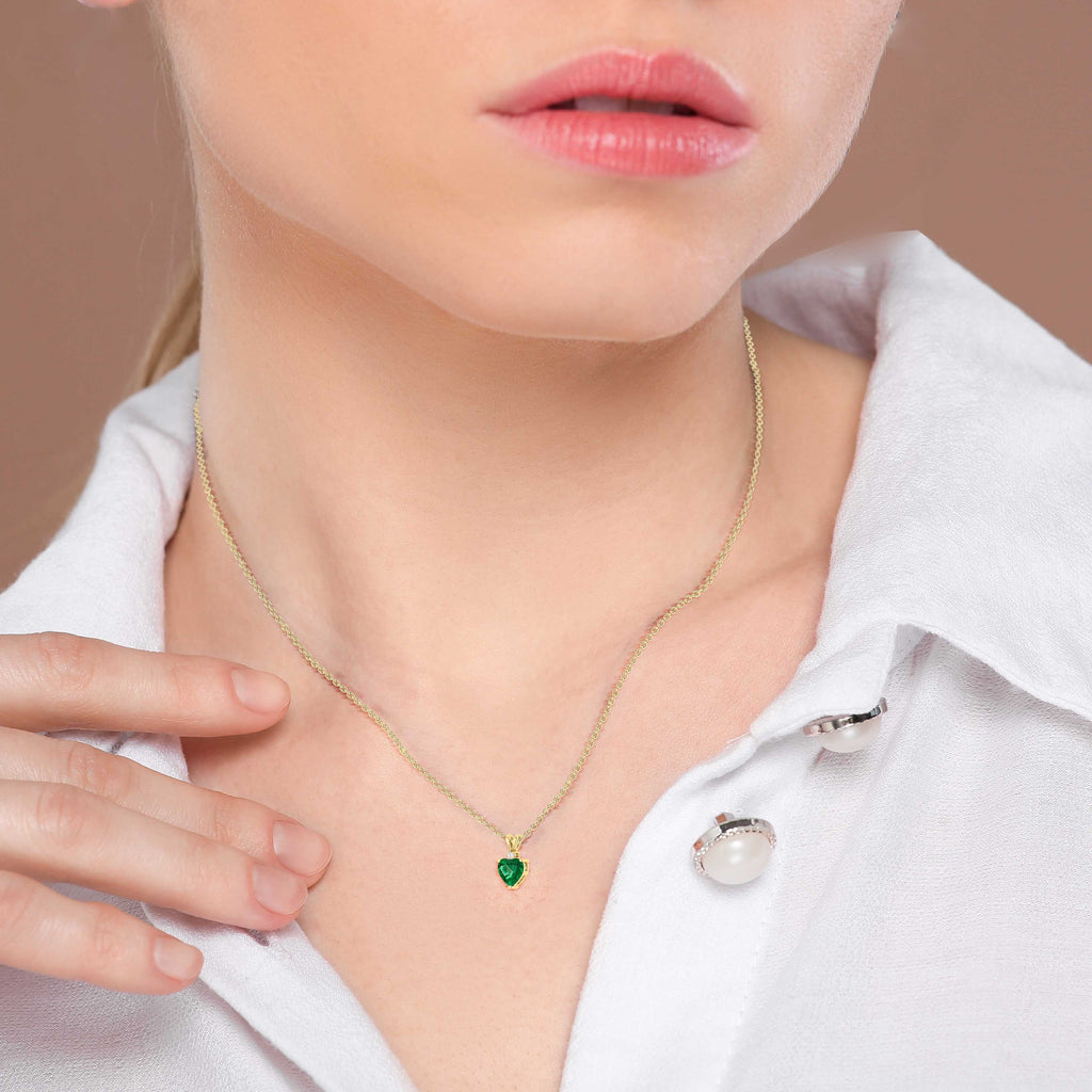 EmeraldVibrant emerald heart pendant necklace crafted in 925 sterling silver, featuring a 7mm heart-shaped emerald with 1.5ct brilliance. Set on a 16" + 2" adjustable cable chain with secure lobster clasp. Lightweight and elegant, perfect for everyday wear or as a meaningful gift.