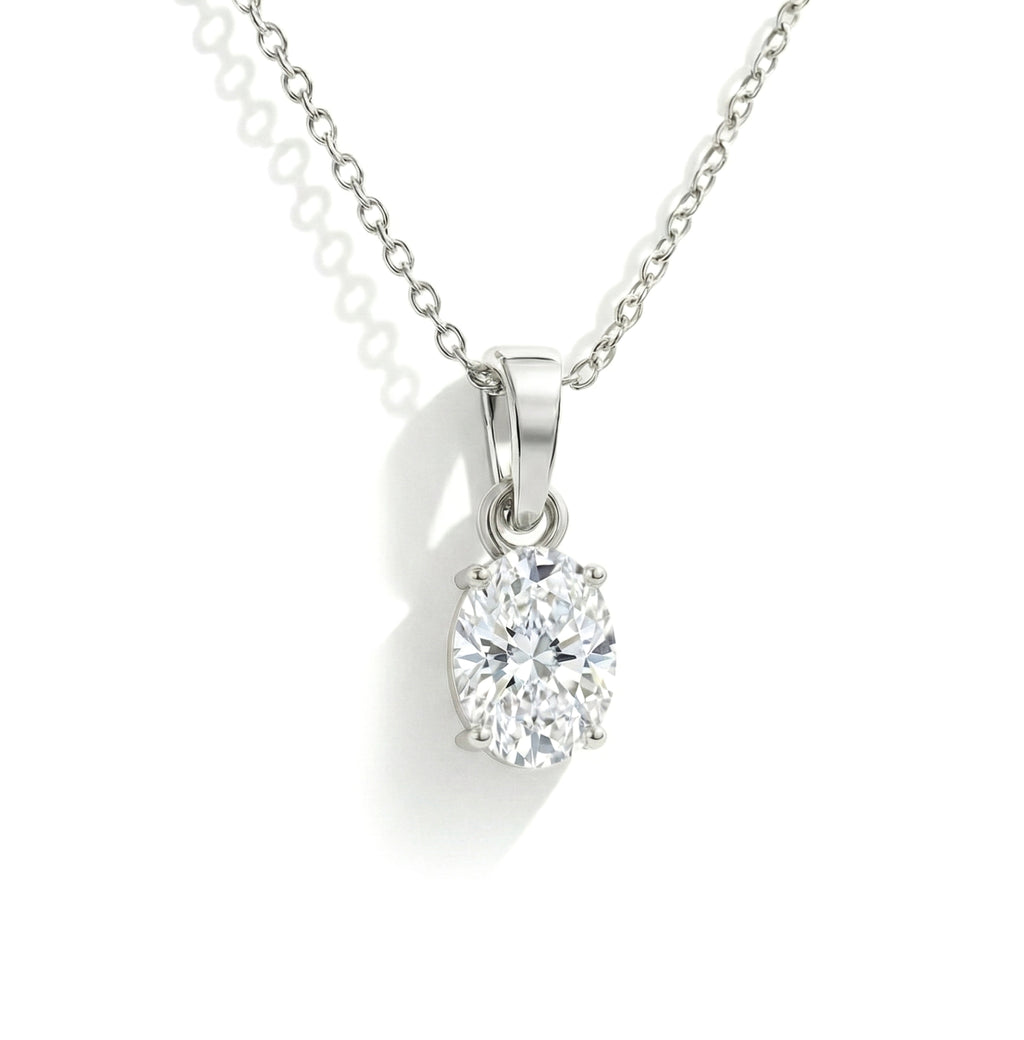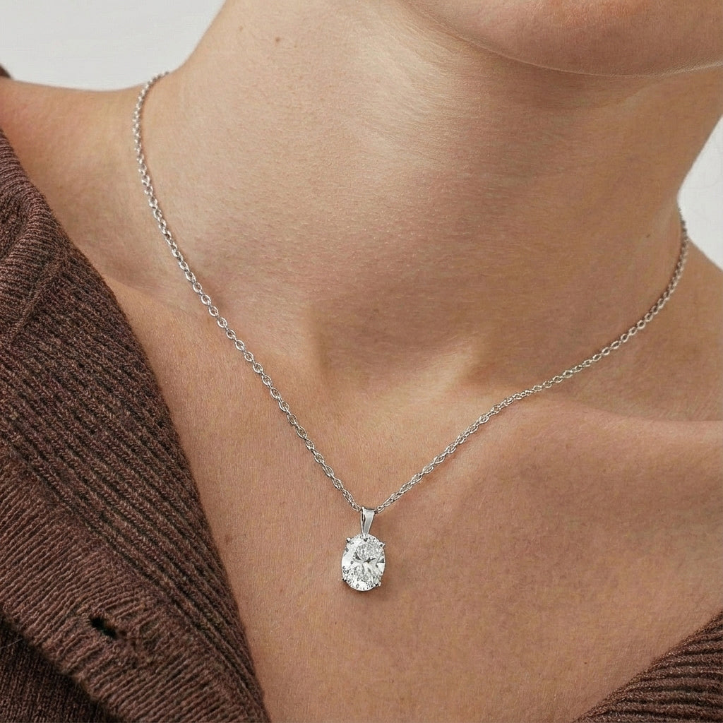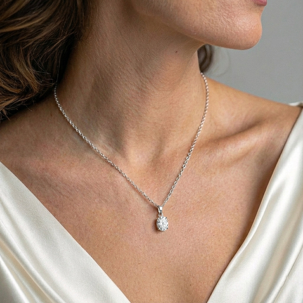 Cubic Zirconia Solitaire Pendant Necklace in 925 Sterling Silver 9x7 MM 1.4ct