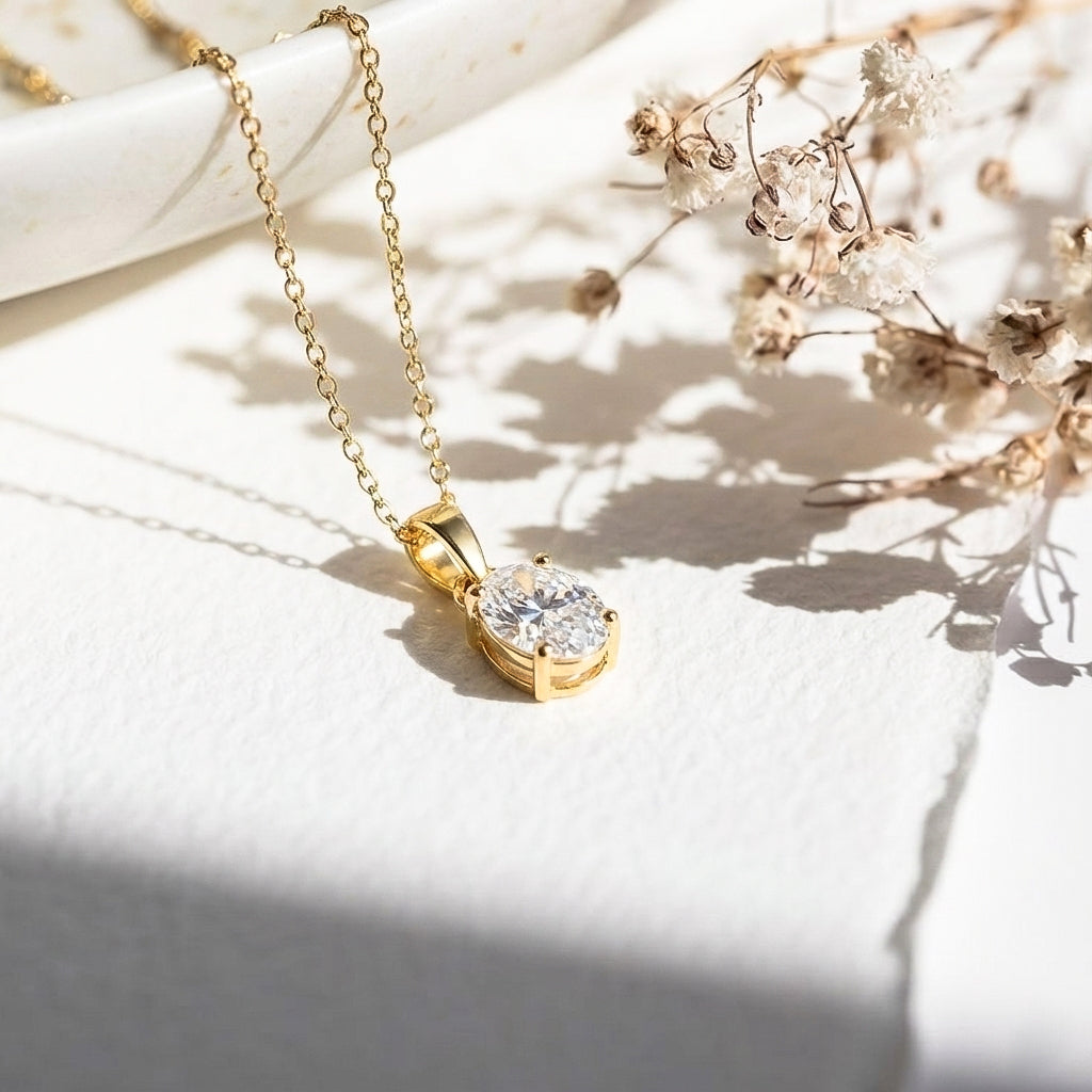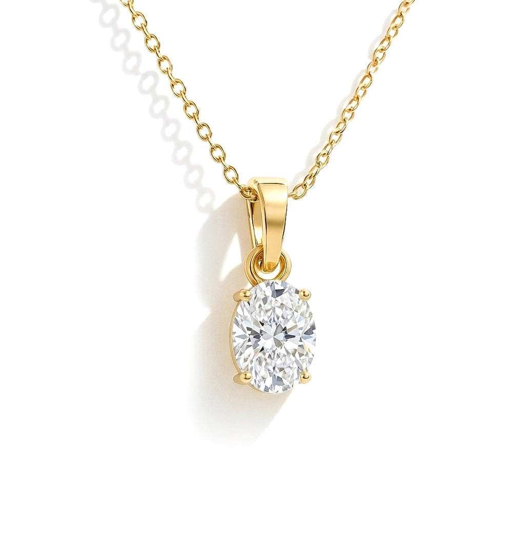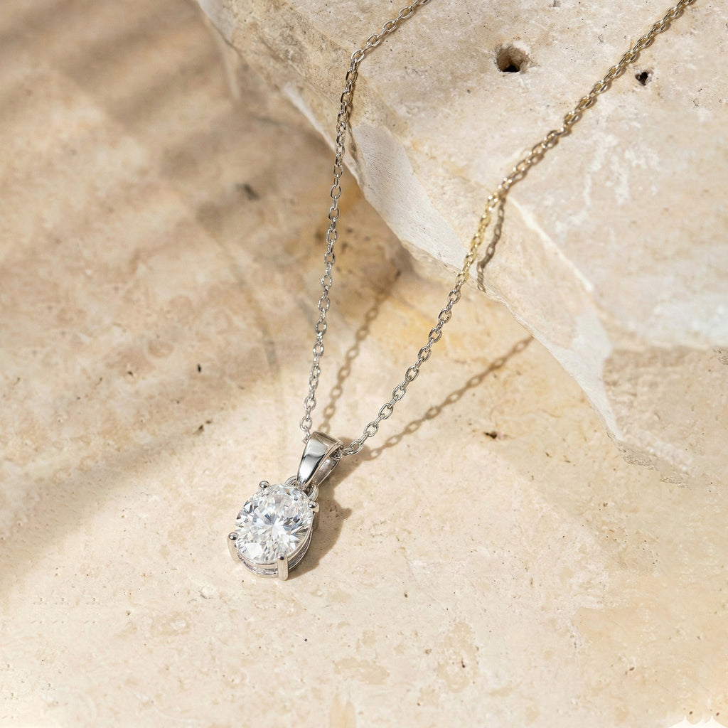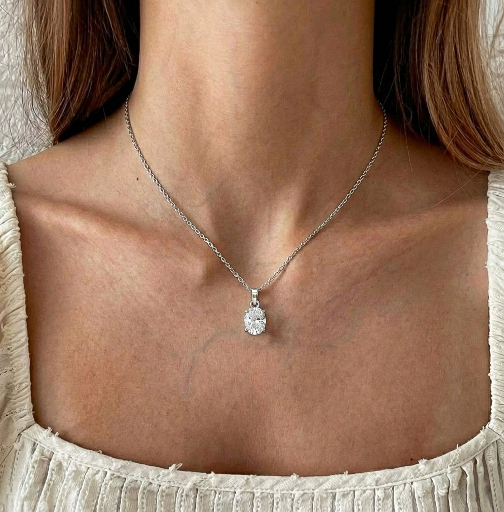 Cubic Zirconia Solitaire Pendant Necklace in 925 Sterling Silver 9x7 MM 1.4ct